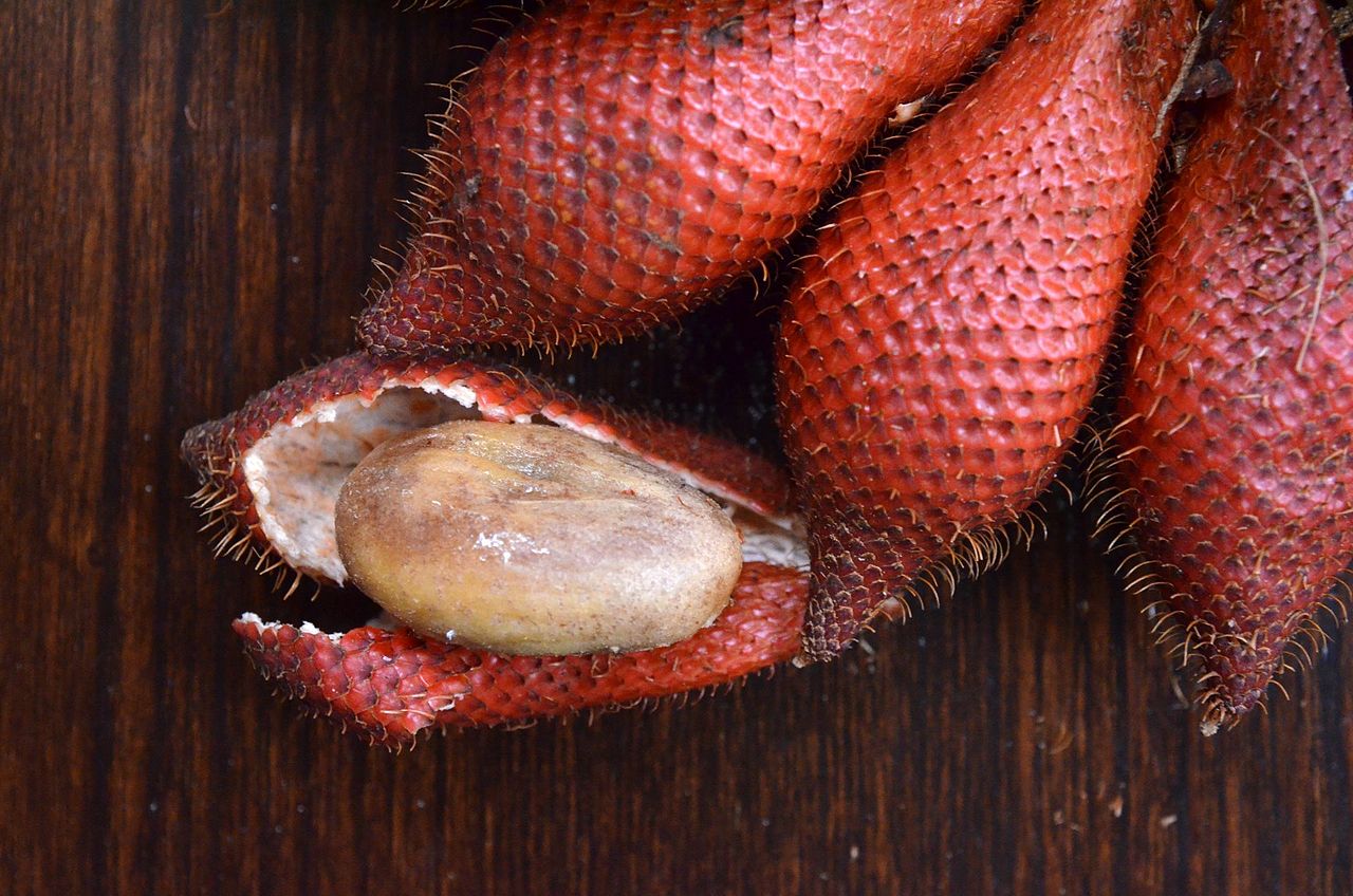 สละ จัดเป็นพืชตระกูลปาล์มเช่นเดียวกับระกำ มีต้นเป็นทรงพุ่มพร้อมหนามแหลมแข็งอยู่บริเวณก้านใบ ลักษณะผลรียาว ส่วนเปลือกจะมีลักษณะเป็นเกล็ดซ้อนกัน และมีขนสั้นๆคล้ายกับหนาม มีกลิ่นหอมที่เป็นเอกลักษณ์ รสชาติเปรี้ยวอมหวาน