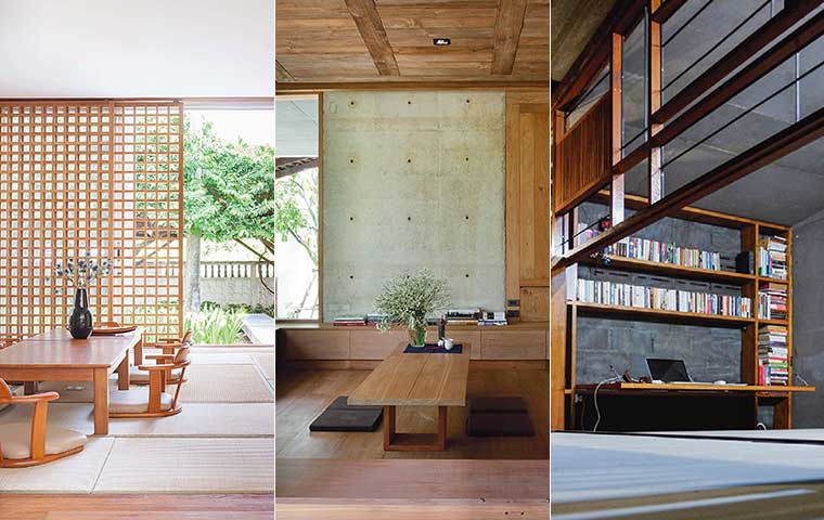ห้องนั่งเล่นสไตล์ญี่ปุ่นด้วยการปูพื้นด้วยเสื่อทาตามิ พร้อมชุดโต๊ะเก้าอี้สําหรับนั่งพื้น ออกแบบประตูบานเลื่อนสองช้ัน โดยให้ประตูชั้นในสุดเป็นระแนงไม้ซ้อนอยู่ด้านหลังประตูบานเลื่อนกระจก สามารถเปิดโล่งเพื่อรับลมและมองเห็นสวนหย่อมได้รอบด้านตามแบบฉบับของบ้านญี่ปุ่น