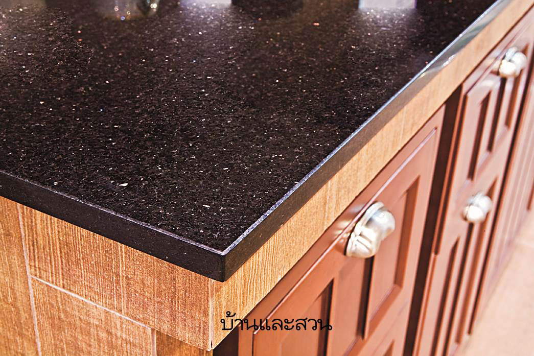 1 ท็อปหินแกรนิต เป็นวัสดุที่มีความแข็งแรงทนทาน พื้นผิวลื่นเป็นมัน สามารถเช็ดทำความสะอาดง่าย นอกจากนี้ยังเจียรขอบช่วยหลบมุมเพื่อความปลอดภัย และเพิ่มเสน่ห์ให้เคาน์เตอร์น่าใช่งานยิ่งขึ้น ขนาด 60 x 100 เซนติเมตร ราคา 5300 บาท
