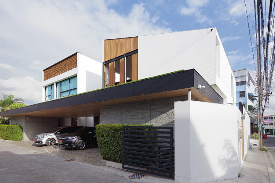 “บ้านสวย” จะพาคุณผู้อ่านไปพบกับบ้านแฝดที่น่าสนใจ เพราะเจ้าของก็เป็นฝาแฝดด้วยเช่นกัน บ้านสองหลังของสองครอบครัว คุณปิ๊ก ชุติมา บุญนำกิจสวัสดิ์ และคุณปี้น ชุติมน ศิริวิทยรัตน์ ซึ่งเลือกสร้างบ้านอยู่ในบริเวณเดียวกัน แม้ว่าต่างก็มีครอบครัวของตัวเองแล้วก็ตาม อันที่จริง…หากพูดให้ถูกคือเป็นบ้านสองหลังที่เชื่อมติดกัน ในความเหมือนที่ต่างกันนั้นยังมีรายละเอียดของพื้นที่ระหว่างกลาง (In Between Space) ทั้งพื้นที่ในเชิงกายภาพ (Physical) และพื้นที่ในเชิงความรู้สึก (Spiritual) พื้นที่ส่วนตัวและการประนีประนอมให้เกิดพื้นที่แห่งการมีส่วนร่วม (Share Space) ส่วนผสมที่ลงตัวเหล่านี้จะเป็นอย่างไร เราค่อยๆเข้าไปชมพร้อมๆกันเลยดีกว่าครับ