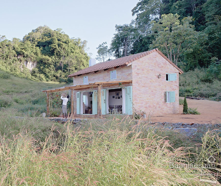 “ที่ตรงนี้เป็นไร่ของชาวบ้านที่ปรับพื้นที่แล้วที่ด้านหลังเป็นภูเขาหินปูน ผมก็สร้างบ้านและปรับพื้นที่ทำไปตามแนวพื้นเดิม เพื่อจะได้ไม่ต้องใช้เครื่องจักรหรือรถใหญ่เข้ามา ถ้าจะมาอยู่กับชาวบ้านที่นี่ก็ต้องทำตัวกลมกลืน ดูสภาพแวดล้อมที่อยู่ เพราะตรงภูเขาด้านหลังบ้านเป็นที่เก็บน้ำฝนใหญ่ของทั้งหมู่บ้าน เราก็ต้องช่วยดูแล ตอนผมมาดูพื้นที่ก็ชอบที่อากาศเย็น ที่สำคัญ ไม่ไกลจากบ้านผมที่ราชบุรี ผมมีบ้านตากอากาศที่เพชรบุรีด้วย เป็นอารมณ์ทะเล ล่าสุดเพิ่งซื้อบ้านเก่าตรงเชิงดอยอินทนนท์ กำลังปรับปรุง เป็นบ้านตากอากาศของครอบครัว จำนวนห้องเยอะกว่า แต่บ้านนี้ หากเบื่อๆ ก็ขับรถมาคนเดียวได้เลย บางครั้งพาก๋งมาด้วย ก๋งก็ติดใจในบรรยากาศและธรรมชาติ อยากมาบ่อยๆ จนตอนนี้บอกให้ทำห้องเพิ่ม”