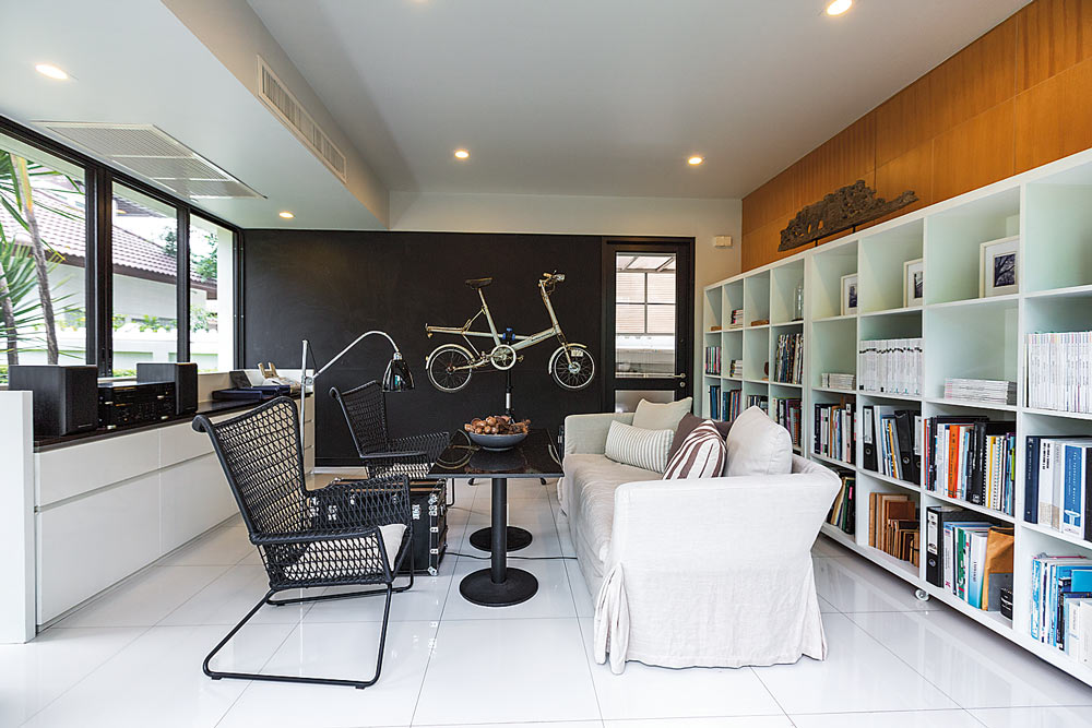 ออกแบบที่แขวนของบนผนังด้วย จะช่วยการจัดเก็บของแบบแขวนเก็บ เช่น กระเป๋า อุปกรณ์กีฬาอย่าง สเกตบอร์ด เซิร์ฟบอร์ด หรือจักรยาน ได้อย่างสะดวกและมองเห็นง่าย