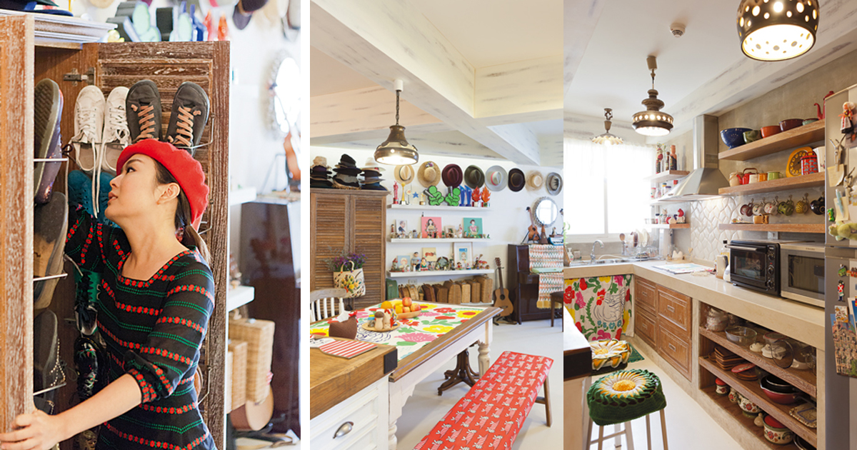 ในมุมครัวตกแต่งอย่างเรียบง่ายโดยได้สีสันสดใสจากบรรดาถ้วยจานชามเซรามิก รวมไปถึงเครื่องครัวอื่นๆซึ่งคุณลุลาเริ่มสะสมจากการเดินทางไปท่องเที่ยวต่างประเทศทั้งเยอรมนี ญี่ปุ่นและไต้หวันในช่วง 2-3 ปีหลังจากที่คิดทำบ้าน ส่วนโต๊ะไม้ตรงกลางสั่งทำพิเศษให้ขนาดพอดีกับพื้นที่ตรงกลางของห้องเป็นไอส์แลนด์สำหรับเตรียมอาหารและเก็บเครื่องครัวต่างๆต่อกับโต๊ะรับประทานอาหารอีกตัว ถัดไปก่อนถึงระเบียงเป็นมุมรับแขกและนั่งพักผ่อนดูโทรทัศน์ ซึ่งรายล้อมด้วยบรรดาของสะสมที่โปรดปรานตั้งแต่หมวก กระเป๋าหวาย ตุ๊กตาตัวเล็กกระจุกกระจิก รวมถึงมุมเปียโนและเครื่องดนตรีชนิดต่างๆด้วยคุณลุลามักใช้นั่งเล่นแต่งเพลงในบางเวลา ทั้งหมดนี้ช่วยเติมความมีชีวิตให้คอนโดมีเนียมแห่งนี้มีความเป็นบ้านที่ดูแล้วอบอุ่นยิ่งขึ้น