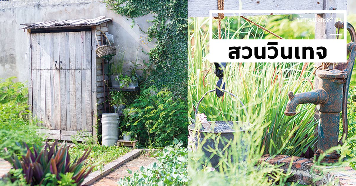 สวนสไตล์วินเทจ ให้ความรู้สึกอบอุ่นดูเรียบง่าย สบายตา มีการเลือกปลูกดอกไม้หลากสีสันในโทนสีอ่อน ๆ เพื่อสร้างอารมณ์หวาน ๆ