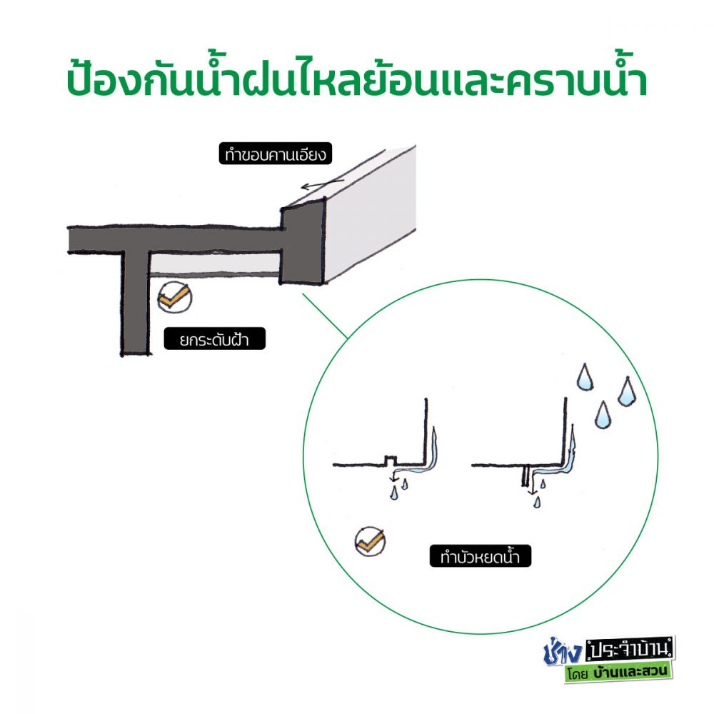 3. ป้องกันน้ำฝนไหลย้อนและคราบน้ำ
