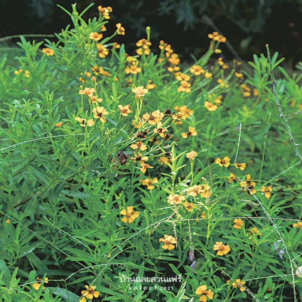 เรียกอีกชื่อว่า เม็กซิกันทาร์รากอน(Tarragon/MexicanTarragon) พืชสกุลเดียวกับดาวเรือง เป็นไม้พุ่มขนาดเล็ก อายุหลายปี ทุกส่วนอวบน้ําและมีขนอ่อนปกคลุม ใบรูปแถบออกเวียนสลับรอบกิ่ง เมื่อขยี้ใบมีกลิ่นหอม ดอกออกที่ปลายยอด มี5กลีบ สีเหลืองสด ต้องการแสงแดดตลอดวัน เติบโตได้ดีในที่มีอากาศเย็น ขยายพันธุ์ด้วยการปักชํากิ่ง ชาวเม็กซิโกนิยมใช้ใบสดหรือใบแห้งชงเป็นชาและปรุงในซุป