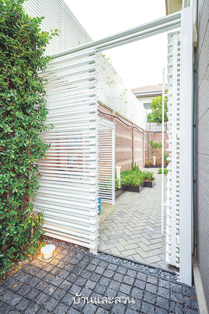 ทว่าด้วยไลฟ์สไตล์ ข้อจำกัดของพื้นที่ บวกกับรูปแบบของบ้านที่เป็นสไตล์โมเดิร์น จึงจำเป็นต้องลดทอนความฝันแสนหวานและฟรุ้งฟริ้งนี้ให้ดูเรียบโฉบเฉี่ยวขึ้น เกิดเป็น สวนมินิมัลโมเดิร์น มิติใหม่ของสวนในเทพนิยายที่เราไม่เคยพบเห็นมาก่อน