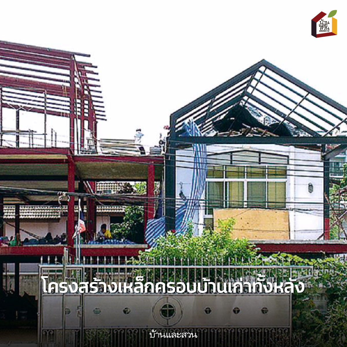 จากบ้านเก่าหลังเดิมอายุ 60 ปีในซอยแคบ ระดับต่ำกว่าถนนครึ่งเมตร และมีปลวกกิน แต่ด้วยความผูกพันธ์ที่อยู่อาศัยมาตั้งแต่เด็กๆ ไอเดียการอยู่ร่วมกันระหว่างของเก่าและของใหม่ที่มีความสมดุล กลมกลืน พร้อมคอร์ตยาร์ด จึงเกิดขึ้น บ้านเก่ามีการขยายออกไปด้วยโครงสร้างเหล็กและเชื่อมต่อทั้งพื้นที่ภายในและพื้นที่คอร์ตร่วมกัน หลังคาบ้านเก่ามีการรีโนเวตใหม่แต่ยังคงทรงหน้าจั่วไว้ ภายในบ้านเลือกใช้สีดำทั้งหมดตามความชอบ ส่วนภายในตกแต่งเป็นมิกซ์แอนด์แมตซ์ ออกแบบให้ทั้งส่วนบ้านเก่าและพื้นที่ต่อเติมใหม่เชื่อมโยงกันได้อย่างต่อเนื่องในชั้น 2 ขณะที่ชั้น 3 มีห้องนอนของลูกแยกส่วนมีความเป็นส่วนตัว ทั่วทั้งบ้านมีมุมนั่งเล่นสบายๆ หลากหลาย เน้นการใช้เฟอร์นิเจอร์ลอยตัว น่าประทับใจทั้งงานสถาปัตยกรรมและงานตกแต่งภายใน >>อ่านต่อ