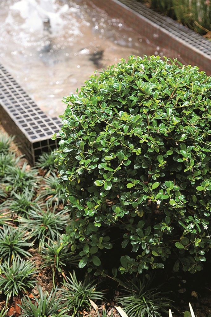 ลักษณะ ไม้พุ่มสูง 0.30-1 เมตร แผ่นใบสีเขียวเข้มเป็นมัน ออกดอกตามซอกใบ ขนาดเล็ก สีขาวมี 5 กลีบ ออกดอกตลอดปี ไม่ค่อยทิ้งใบ ได้รับความนิยมในการนำไปใช้เป็นไม้ตัดแต่ง หรือปลูกเป็นไม้รั้วทำขอบแปลง ชอบแสงแดดเต็มวัน ทนน้ำท่วมขัง