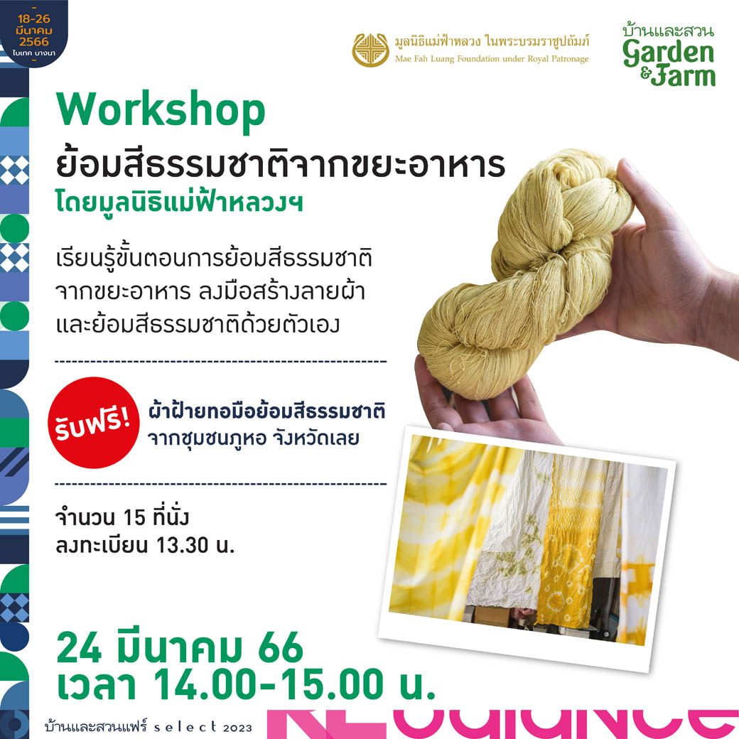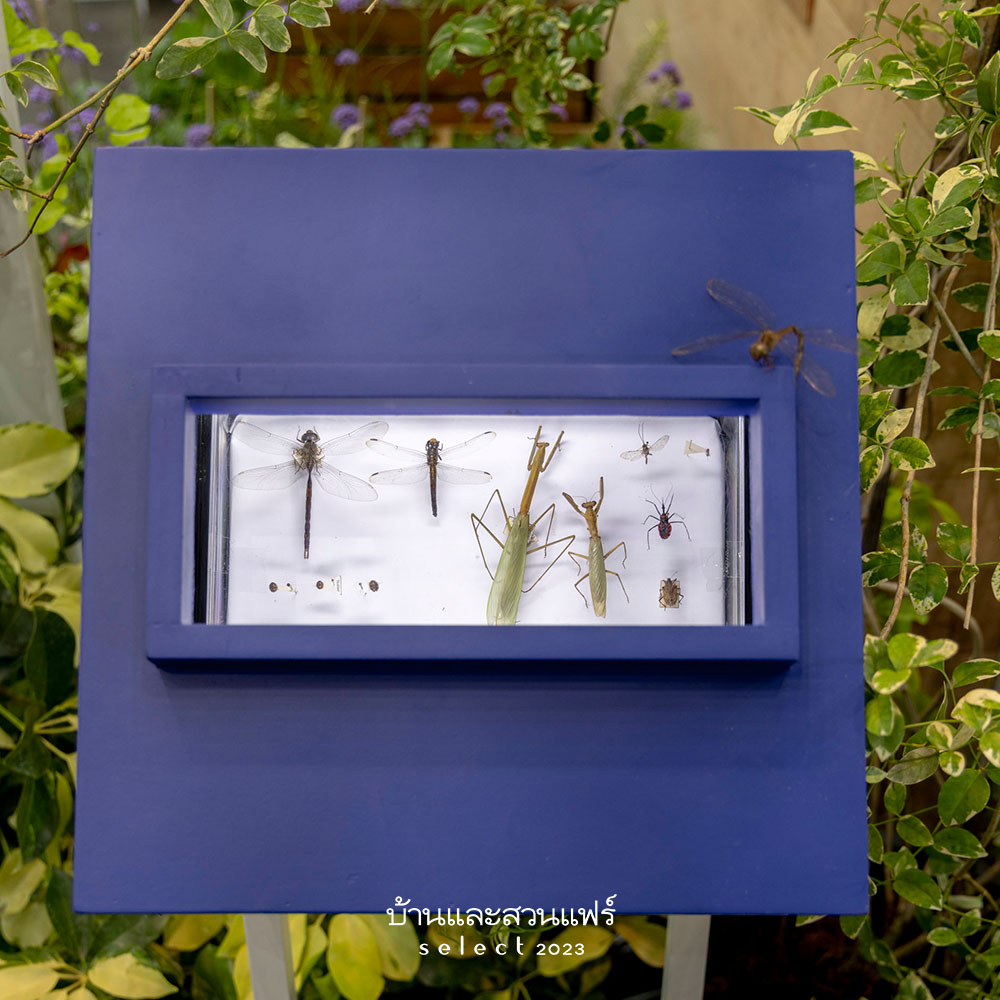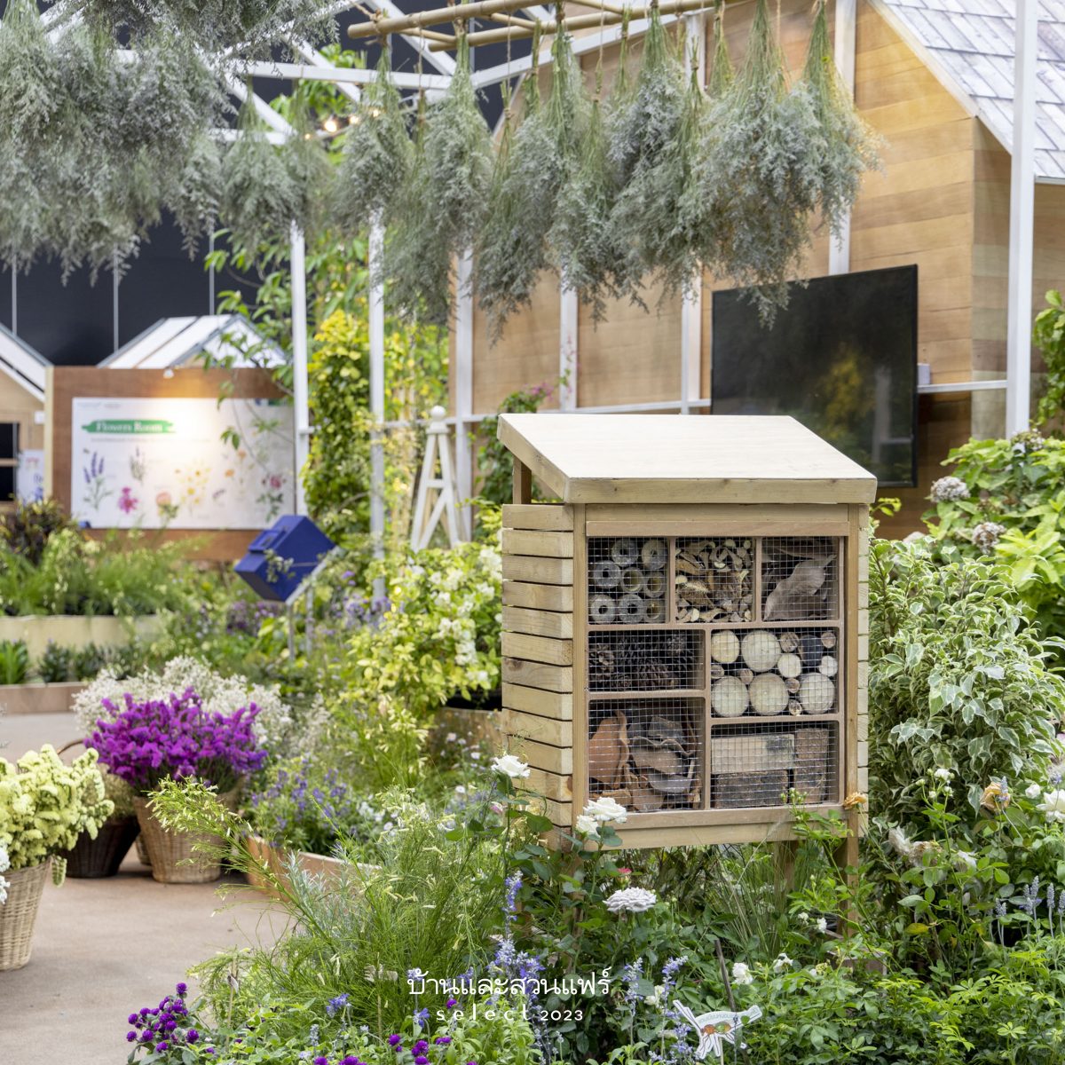 บรรยากาศสุดผ่อนคลายด้วยสีสันจากดอกไม้ที่ทำหน้าที่ล่อแมลงดีและตัวห้ำตัวเบียน เข้ามาในสวน ช่วยสร้างนิเวศที่สมดุลให้สวนครัว รู้จัก Insect Hotel โรงแรมแมลงที่มีประโยชน์ในสวน ในมุมนี้ยังมีตัวอย่างการย้อมสีธรรมชาติจากขยะอาหาร และผลผลิตทางการเกษตรโดยมูลนิธิแม่ฟ้าหลวง ฯ ร่วมจัดแสดงอยู่ด้วย