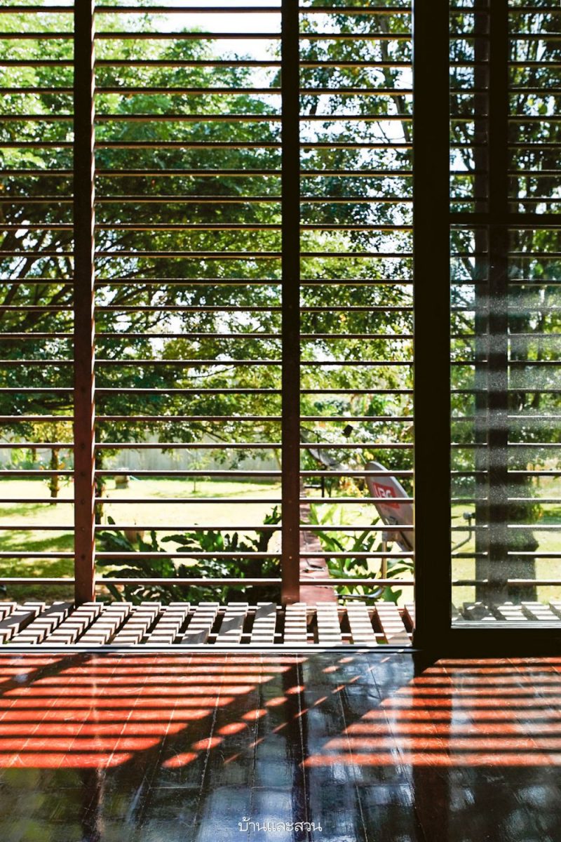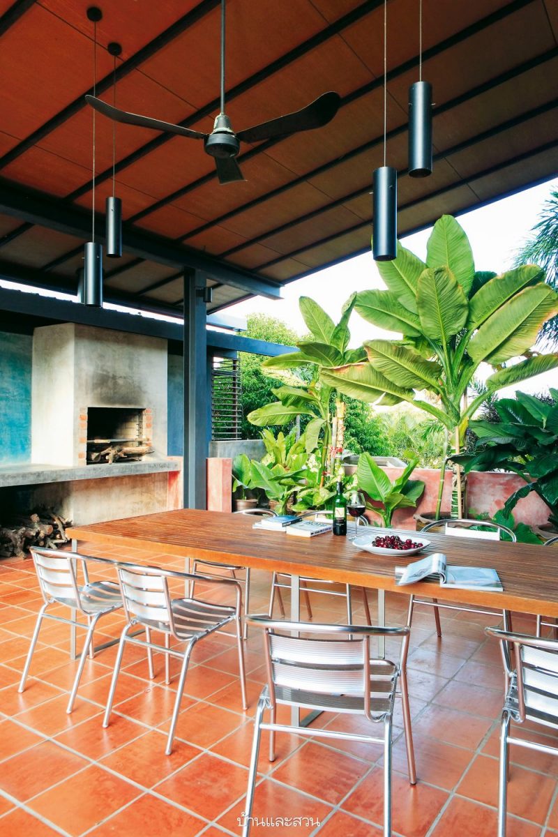 ที่สำคัญ บ้านไม้โมเดิร์นใต้ถุนสูง หลังนี้มีสวนขนาดใหญ่ล้อมรอบตัวบ้าน เป็นอีกมุมที่เจ้าของบ้านโปรดปรานมาก หากมีเวลาว่างเมื่อใดก็จะลงไปนอนเล่นอ่านหนังสือ ถือว่าเป็นพื้นที่ส่วนตัวอีกแห่งหนึ่ง