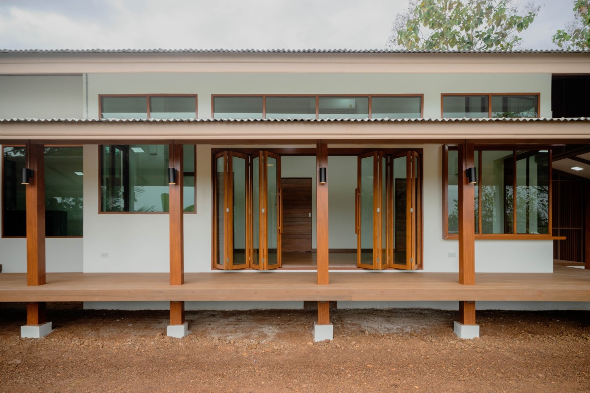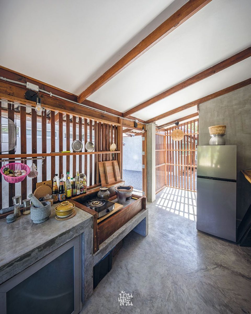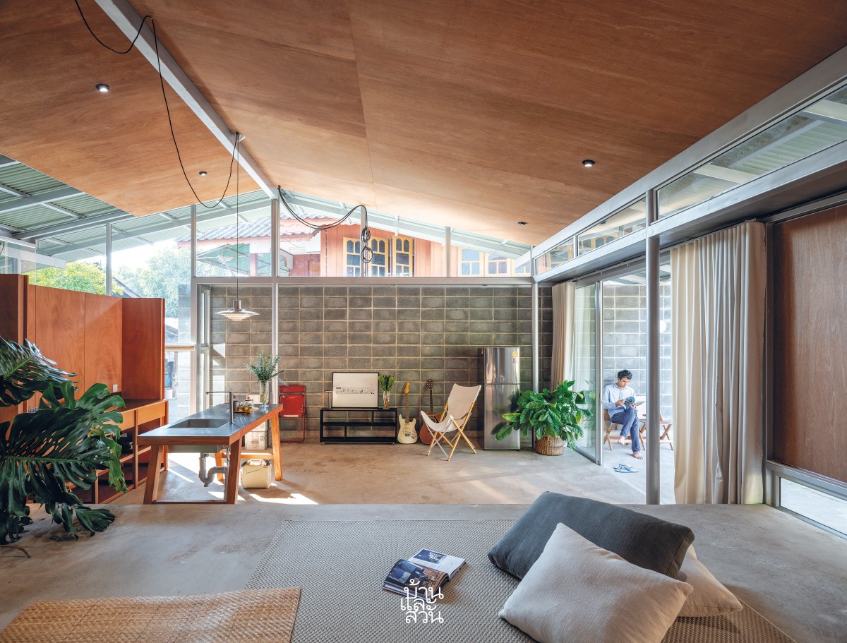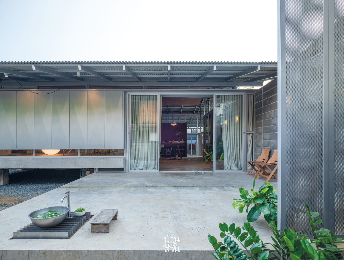 บ้านไม้โครงสร้างเหล็ก ในกลิ่นอายแบบไทยๆ ผสมวัสดุสมัยใหม่แข็งแรง ทนทาน และดูแลรักษาง่าย ผสมด้วยไม้จากบ้านเดิมมาเป็นส่วนของพื้นและผนังตัวบ้าน โดยวางตัวเป็นแนวยาวเพื่อขวางรับทางลมและไล่เรียงฟังก์ชันไปตามพื้นที่แบบง่ายๆ >> อ่านต่อ