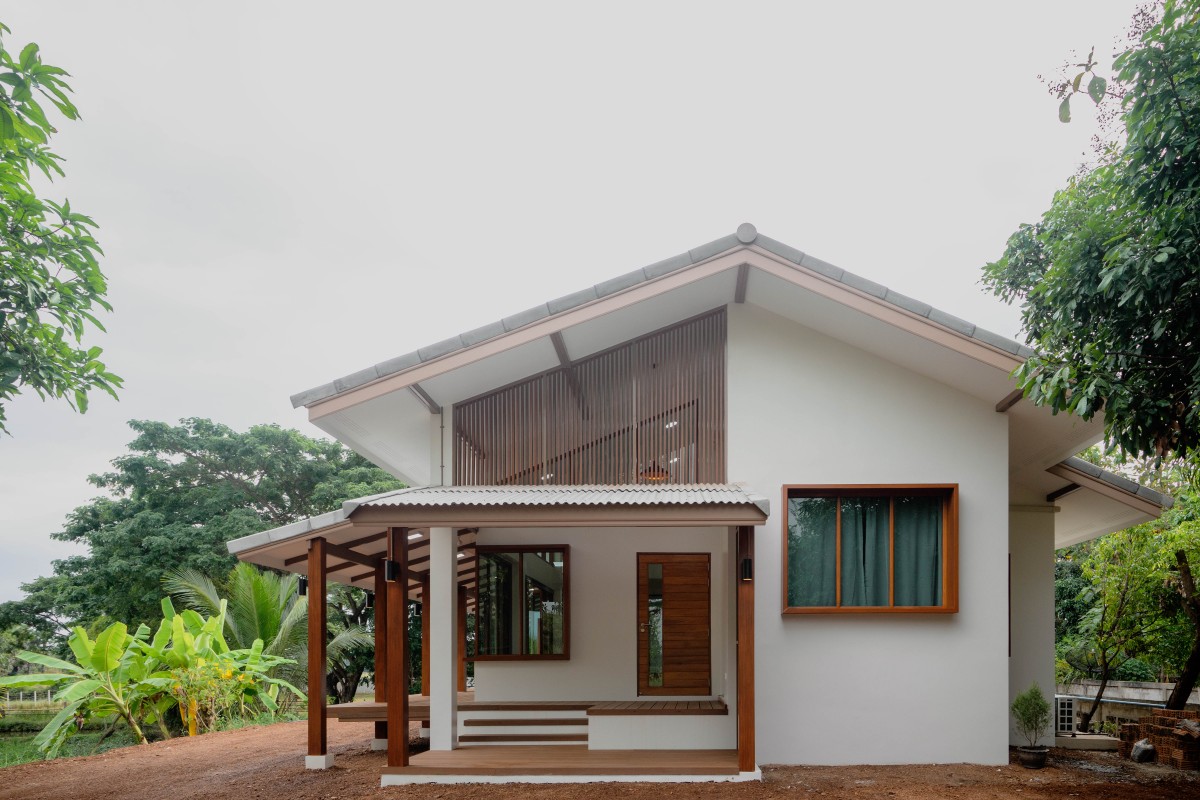 แบบบ้านชนบทสมัยใหม่ ที่หยิบยกความเป็นพื้นถิ่นมาใช้กับองค์ประกอบสำคัญของบ้าน อย่างรูปทรงอาคารที่มีหลังคาเป็นทรงจั่ว เพื่อให้บ้านดูถ่อมตัว ขณะที่ภายในบ้านมีความโมเดิร์นตามวิถีสมัยใหม่ โดยไม่ลืมนำธรรมชาติเข้ามาเป็นส่วนหนึ่งกับวิถีชีวิตของคนในบ้านด้วย >> อ่านต่อ