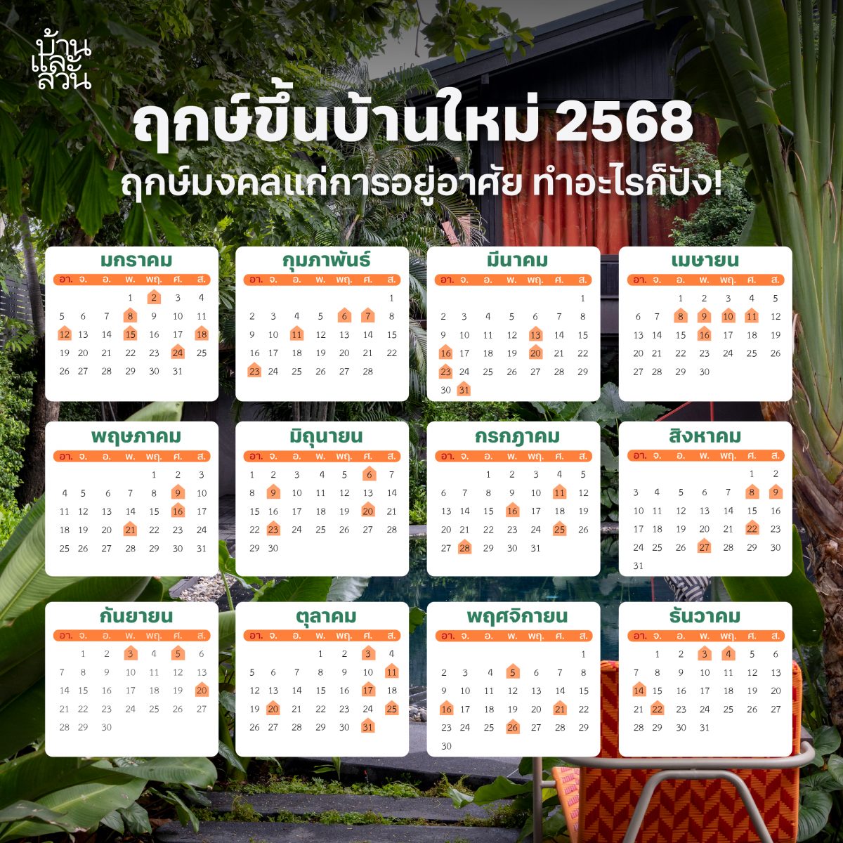 ฤกษ์ขึ้นบ้านใหม่ เดือนมกราคม 2568