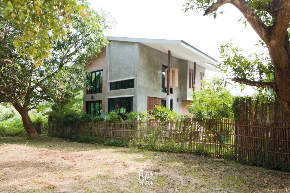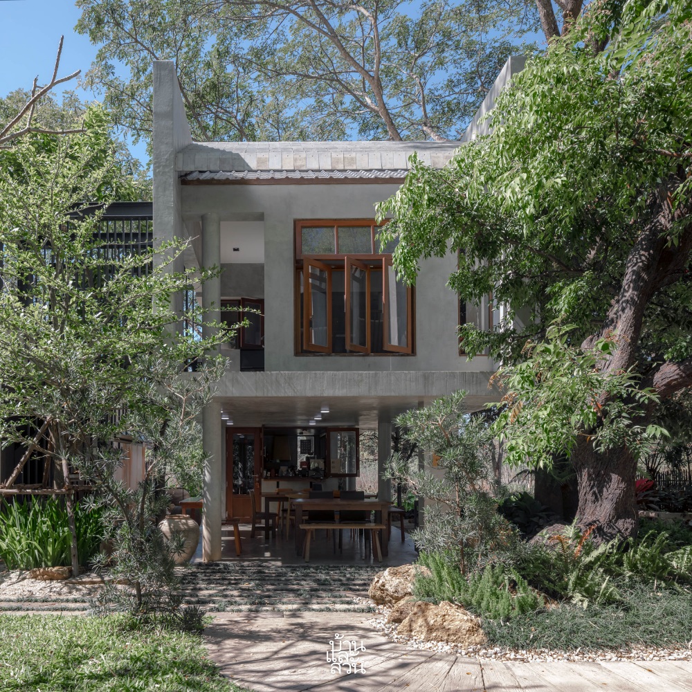 บ้านปูนสองชั้นหลังคาจั่ว บ้านขนาดอบอุ่นในอ้อมกอดของผืนป่า