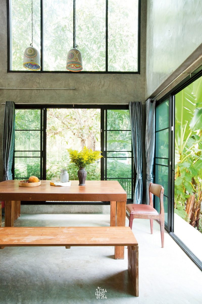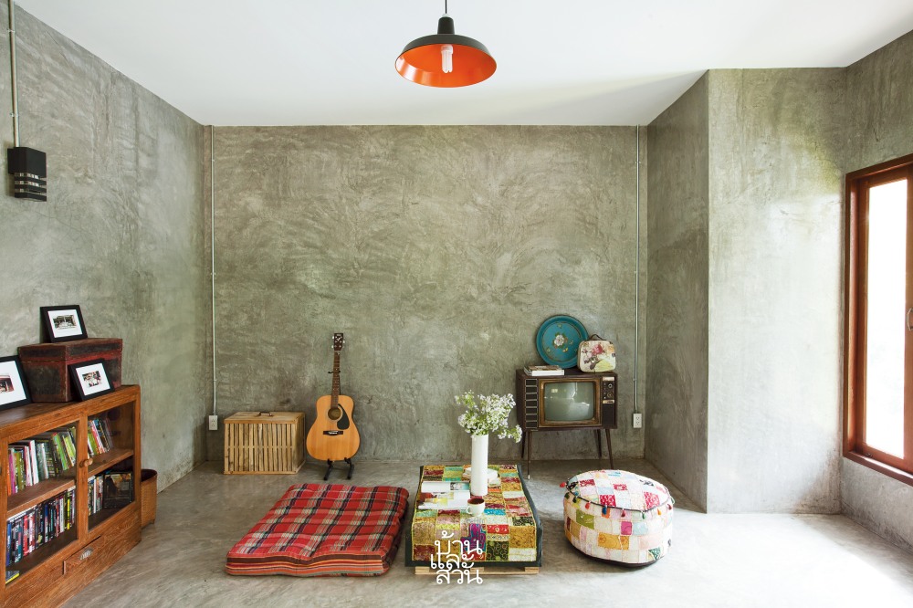 บ้านปูนดิบเท่ของคู่สามีภรรยาตัดที่สินใจทิ้งชีวิตเมืองกรุงหันไปสร้างบ้านปูนชั้นเดียวอยู่ในจังหวัดแม่ฮ่องสอน เน้นความกะทัดรัดด้วยขนาดความกว้าง 6 เมตร ยาว 12 เมตร โดยใช้วัสดุที่มีในพื้นถิ่น อย่างอิฐ ไม้ และกระเบื้องดินเผา เพื่อความเรียบง่ายและช่วยประหยัดงบประมาณ แปลนบ้านจึงเป็นรูปสี่เหลี่ยมผืนผ้าที่ตรงไปตรงมา ตัวบ้านออกแบบให้มีช่องเปิดมากมายรับแสงสว่างและช่วยให้อากาศถ่ายเทได้ดี ไม่มีการทำฝ้าเพดานทำให้บ้านหลังเล็กมีสเปซที่เปิดโล่งไม่อึดอัด แล้วตกแต่งภายในด้วยเครื่องเรือนไม้แบบเรียบๆ และของตกแต่งกลิ่นอายแบบพื้นถิ่น แถมบางชิ้นก็ประดิษฐ์เอง ทำให้บรรยากาศของบ้านดูสงบ อบอุ่น และน่าอยู่มาก >> อ่านต่อ
