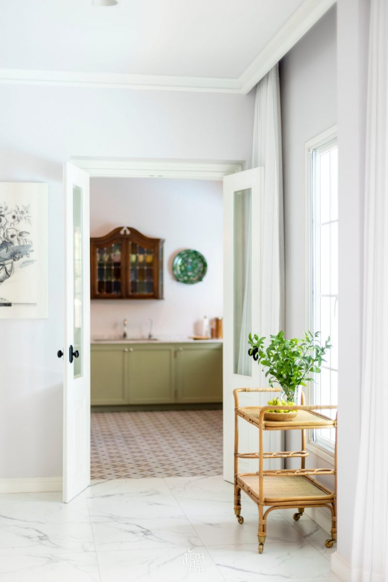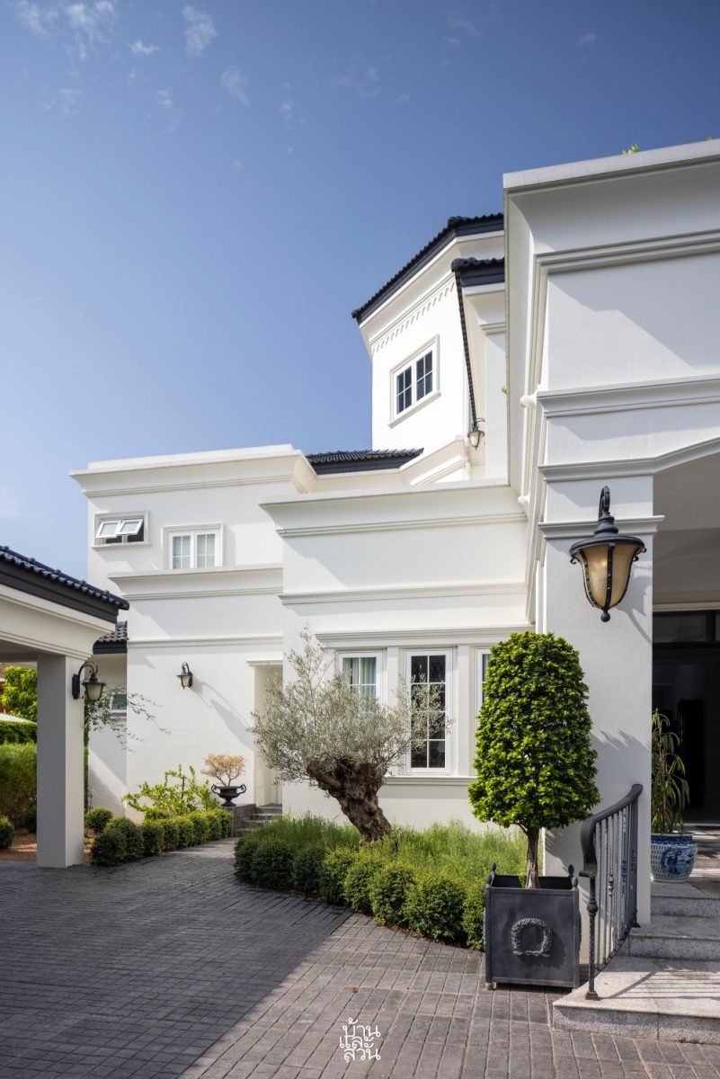 บ้านกลิ่นอายคลาสสิก หลังนี้ตกแต่งอย่างพิถีพิถันทุกรายละเอียด เป็นผลงานออกแบบของ คุณเล็ก –นภาภรณ์ โพธิรัชต์ มัณฑนากรแห่ง Lexoda ที่มีลายเซ็นอันโดดเด่นในการมิกซ์แอนด์แมตช์งานสไตล์คลาสสิกวินเทจเข้ากับไลฟ์สไตล์สมัยใหม่ได้อย่างลงตัว