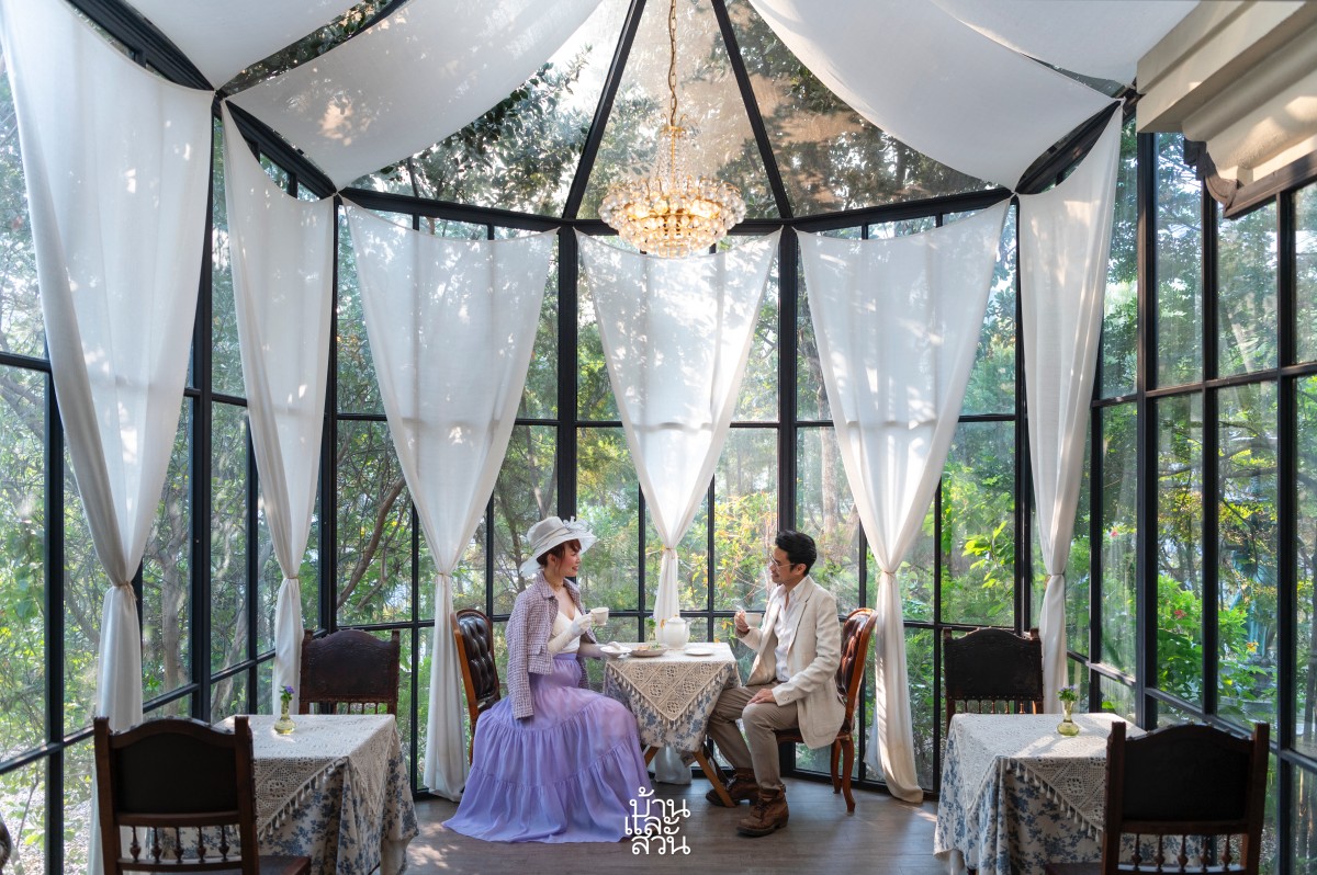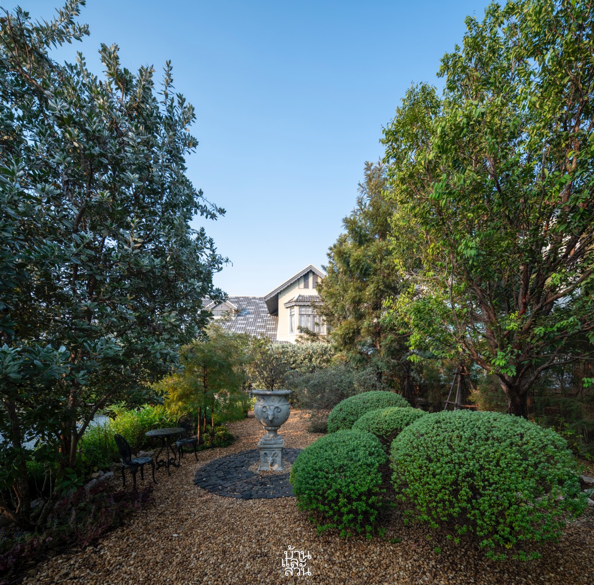 เนื่องจากเจ้าของสวนแห่งนี้ ต้องทำงานประจำกันทั้งคู่ จึงใช้เวลาร่วม 2 ปี ในการแต่งบ้านและจัดสวนจนสวย พร้อมเริ่มต้นทำธุรกิจเล็ก ๆ คือ การให้เช่าสถานที่สำหรับถ่ายแฟชั่น และเปิดเป็นคาเฟ่ในบ้านที่มีคอนเซ็ปต์ “มาทานข้าวบ้านเพื่อนที่ฝรั่งเศส” โดยทุกสิ่งมีความฝรั่งเศสแบบย้อนยุค ไม่ว่าจะเป็น กลาสเฮ้าส์ การตกแต่ง เมนูอาหาร ไปจนถึงสวนรอบบ้านก็เป็น “สวนฝรั่งเศส” ในแบบที่เจ้าของบ้านตั้งใจออกแบบและลงมือจัดสวนกันด้วยตัวเอง