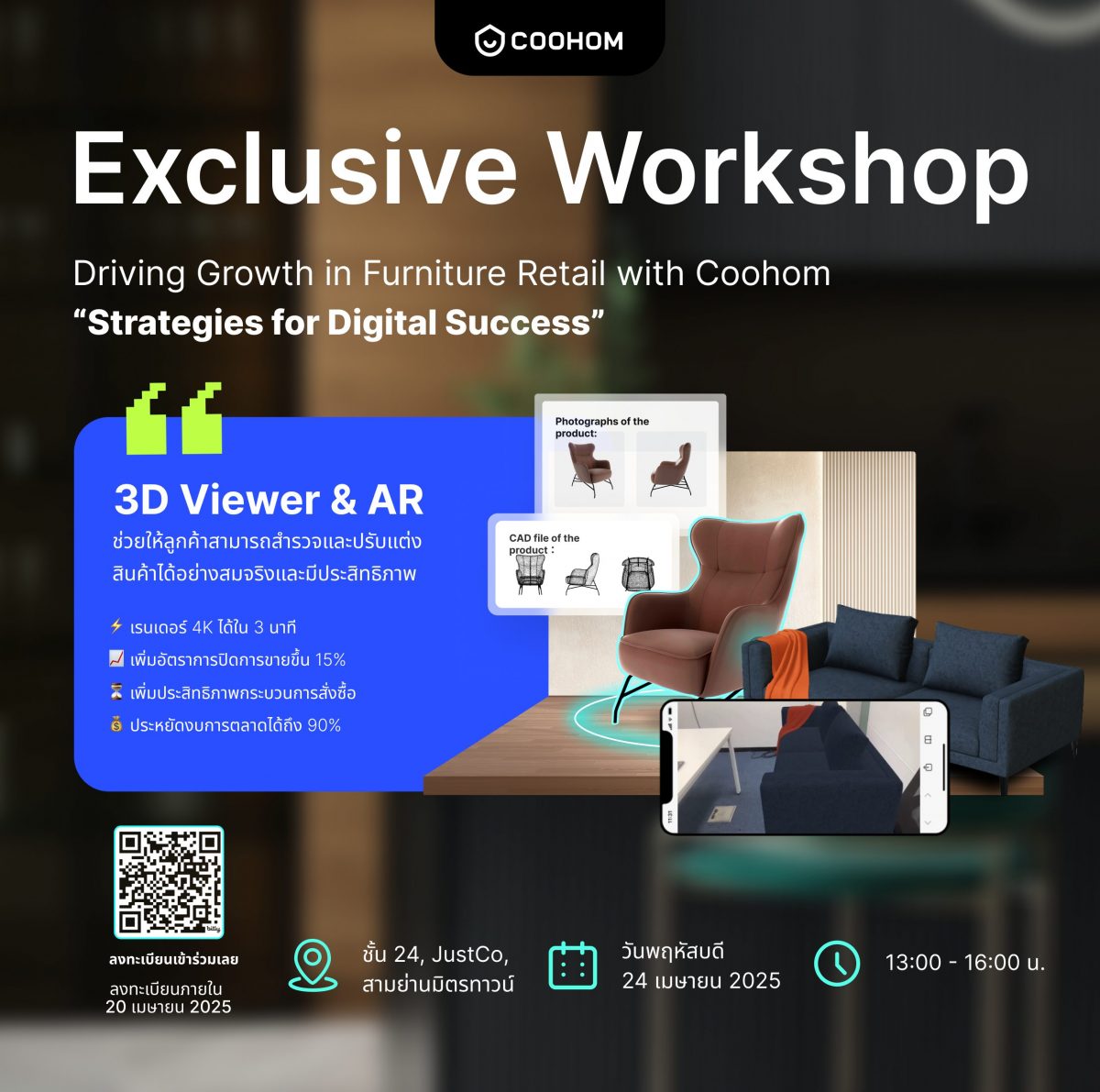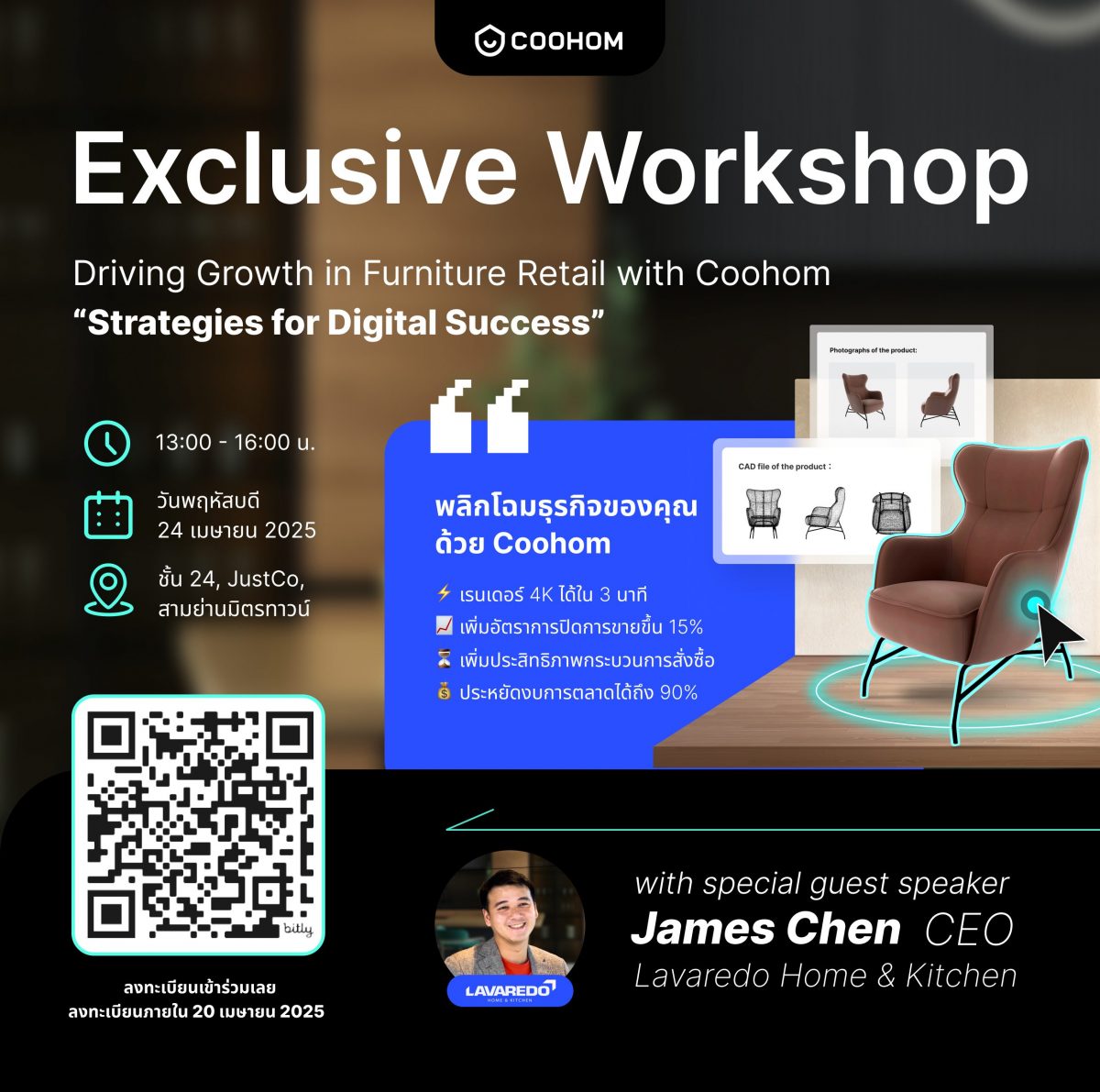 🚀 Exclusive Workshop: พลิกโฉมธุรกิจเฟอร์นิเจอร์ค้าปลีกด้วย Coohom!