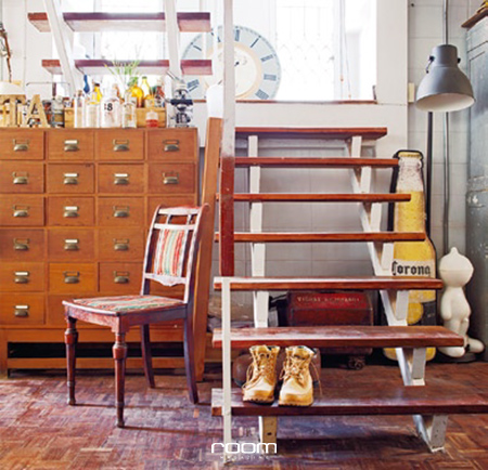 - การ รีโนเวตบ้านครึ่งปูนครึ่งไม้ ให้เป็น American Vintage เริ่มแรกต้องพิจารณาว่าจะเก็บโครงสร้างหรือดีเทลของเดิมต่าง ๆ ไว้บ้างหรือไม่ บ้านหลังนี้เก็บพื้นไม้ปาร์เกต์ชั้นหนึ่งไว้เพราะมีลวดลายเข้ากับพื้นอิฐนอกบ้าน จากนั้นจึงต่อเติมส่วนอื่น ๆ ให้เข้ากับไลฟ์สไตล์การใช้ชีวิต เช่น การรื้อฝ้าชั้น 1 ออกเผยให้เห็นท้องคานและพื้นชั้น 2 หรือจะเป็นการก่อกำแพงอิฐสีขาวขึ้นมาใหม่เพื่อช่วยเพิ่มความสว่างและสบายตา