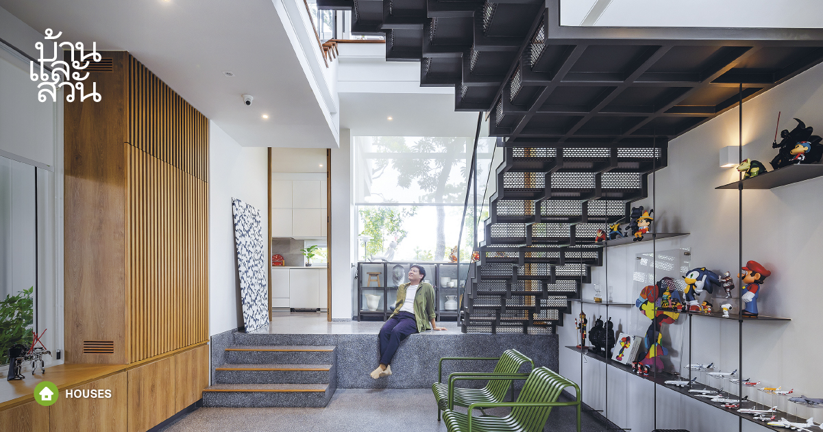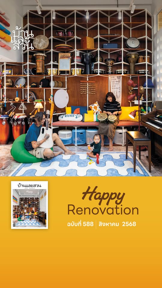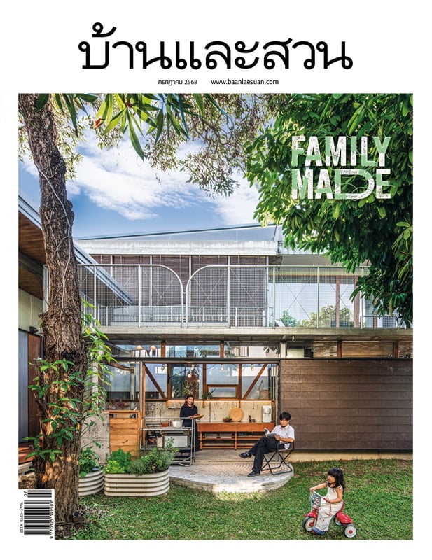 เจ้าของ-ออกแบบ : SIWA Interior การรีโนเวตบ้านของสองดีไซเนอร์แห่ง SIWA Interior ที่ทำให้บ้านเป็นทั้งมุมพักผ่อนแสนอบอุ่น และสนามทดลองแมททีเรียลที่ชื่นชอบแต่ไม่มีโอกาสได้เลือกใช้ในงานจริง ชั่วขณะหนึ่งใต้แสงแดดยามเช้ากลางสวนเล็กๆ ของบ้าน Siwa House ทำให้นึกไปถึงวันพักผ่อนในหมู่บ้านตากอากาศสักแห่ง แม้ความวุ่นวายของเมืองยังคงอยู่ที่ปากซอยห่างออกไปไม่ไกล แต่บรรยากาศก็ชวนให้รู้สึกผ่อนคลายอย่างบอกไม่ถูก เดิมบ้านหลังนี้อยู่ไม่ไกลกันนักกับโฮมออฟฟิศของคุณเอ้-รัชนีกร นาครินทร์ และคุณเสก-ศิวะเสกข์ ลอยเดือนฉาย สองนักออกแบบจาก SIWA Interior ทั้งคู่เล่าถึงการใช้ชีวิตทั้งในและนอกเวลาในโฮมออฟฟิศ ที่เป็นแรงจูงใจสำคัญในการตามหาบ้านใหม่ “เรารู้สึกว่า พอบ้านกับออฟฟิศอยู่ใกล้กัน ทำให้เราไม่สามารถตัดขาดจากงานได้” จึงมองหาที่อยู่ใหม่ในย่านที่คุ้นเคยเพื่อทำเป็นบ้านที่ปล่อยใจจากงานได้อย่างเต็มที่ จนมาพบกับบ้านเก่า 2 ชั้นในที่ดิน 95 ตารางวากำลังประกาศขาย ซึ่งพอดีทั้งขนาดและทำเลเงียบสงบ จึงตัดสินใจซื้อและรีโนเวตใหม่ โดยมีโจทย์ใหญ่คือการทำให้บ้านเป็นที่พักผ่อนอยู่สบายสำหรับสองคนและแมวสองตัว เติมหลากจริตของการพักผ่อนไว้ในมุมบ้าน Siwa House เมื่อต้องการที่พักผ่อนที่ได้ยืดเหยียดและสูดลมหายใจ สิ่งที่ต้องทำก่อนรีโนเวตคือการรื้อผนังบ้านที่เคยกั้นห้องแยกสัดส่วน เลาะฝ้าที่เคยบังความสูงเพดานจริงออกเหลือไว้แต่โครงเสาคานที่ยังแข็งแรงแล้วออกแบบผังใหม่ให้เหมาะกับการใช้งาน ชั้นล่างเน้นผังที่เชื่อมต่อกัน สร้างบรรยากาศโล่งสบายแบบโอเพ่นแปลน โดยผสมผสานหลากฟังก์ชันไว้ในห้องเดียวเพื่อให้ใช้งานได้หลากหลาย ตั้งแต่ห้องนั่งเล่นที่รวมแพนทรี่ โต๊ะรับแขก มุมโซฟาเข้าด้วยกัน และครัวฝั่งด้านหลังที่พ่วงโต๊ะรับประทานอาหารกลายเป็นสเปซกว้างที่ทำให้ทั้งคนเตรียมอาหารและผู้ร่วมโต๊ะได้ใช้เวลาอยู่ร่วมกันได้ นอกจากนี้ การหลอมรวมหลายห้องเข้าด้วยกันและเปิดมุมมองออกไปยังสองสวนที่มีอยู่เดิมทั้งฝั่งหน้าหลัง ก็ทำให้ทุกส่วนในบ้านต่างได้รับวิวสีเขียวและแสงธรรมชาติที่ช่วยเติมความละมุนให้บ้านได้ไม่น้อย ในขณะที่ชั้นล่างเน้นรวมห้องเข้าด้วยกัน ชั้นสองกลับแยกฟังก์ชันจากกันเพื่อเน้นการพักผ่อน คัดเฟอร์นิเจอร์ให้เหลือน้อยชิ้นเพื่ออาศัยความสบายตาช่วยกล่อมใจให้สงบสบาย […]