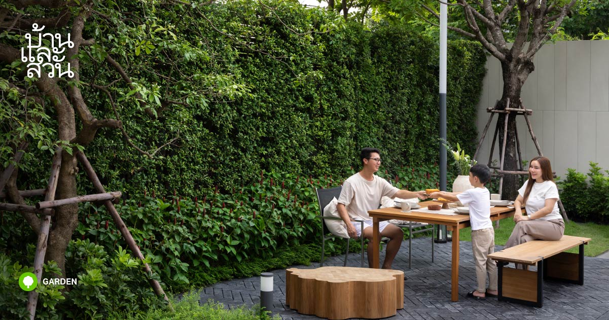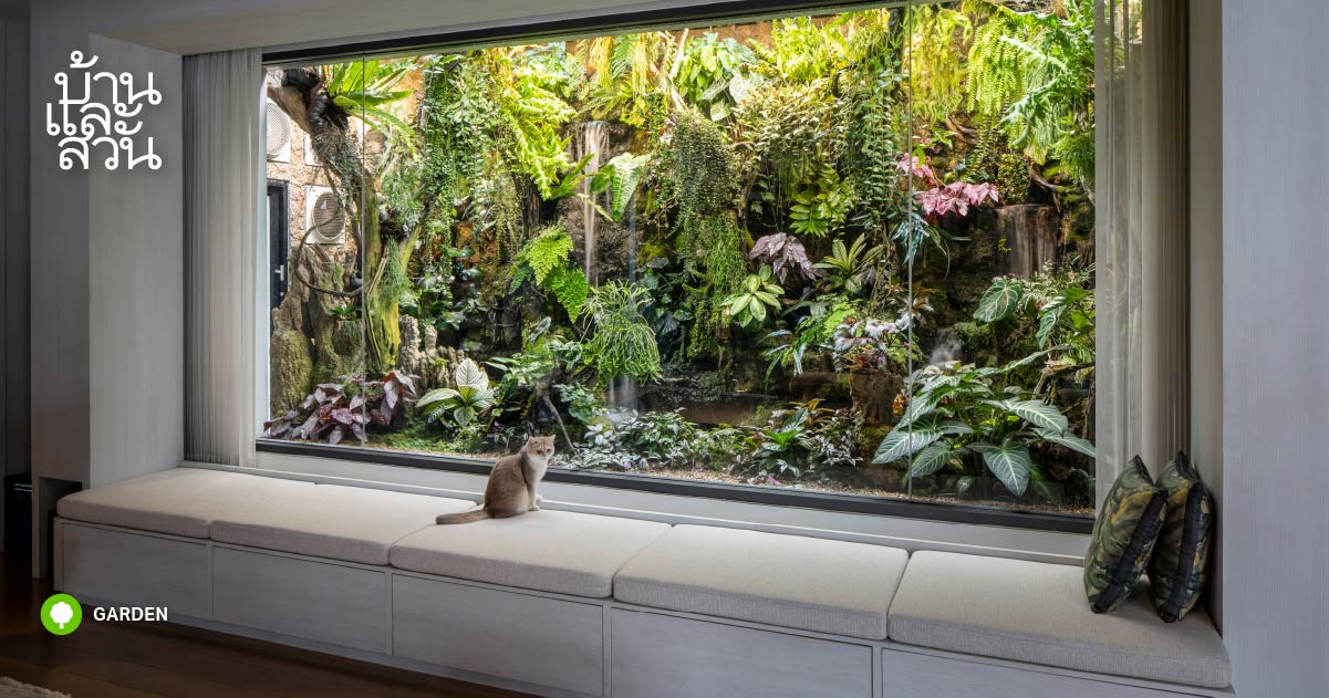สวนญี่ปุ่นทรอปิคัล แห่งนี้ ตั้งอยู่บนเนื้อที่กว่า 4 ไร่ ในจังหวัดร้อยเอ็ด โดย คุณหมอต๋ง-นายแพทย์ธนฤทธิ์ จุรีมาศ และคุณหมอออม-แพทย์หญิงนภัสวรรณ ฟ้าสว่าง ได้เปลี่ยนผืนดินเดิมของคุณยายให้กลายเป็นบ้านและสวนอันแสนอบอวลด้วยความรักของคนในครอบครัว ด้วยเจ้าของบ้านทั้งคู่เป็นแพทย์ ซึ่งเป็นสายอาชีพที่เห็นสัจธรรมจริงแท้ของชีวิตในทุกวันของการทำงาน คุณป๊อบ-กิตติพงศ์ ธรรมสรณะโชติ นักจัดสวนจาก Sarana Garden จึงนำแนวคิดนี้มาต่อยอดใช้เป็นจุดเริ่มต้นในการออกแบบสวน และตั้งชื่อของ สวนญี่ปุ่นทรอปิคัล ไว้ว่า “สวนธรรมดา ธรรมดาของชีวิต” “การออกแบบสวนนี้เริ่มจากการศึกษาสถาปัตยกรรมหรือตัวบ้านก่อน ซึ่งมีการวางผังให้สอดคล้องกับทิศทางลม และเป็นเรื่องที่สถาปนิกให้ความสำคัญมาก ๆ เราจึงออกแบบสวนให้เป็นไปในเรื่องเดียวกัน โดยหัวใจหลักของเราคือจะต้องไม่ขวางทิศลม แต่ต้องเสริมกันให้ลงตัวมากขึ้น เช่น การเลือกพรรณไม้ทรงพุ่มโปร่ง วางตำแหน่งบ่อน้ำไว้เหนือลม เป็นต้น” เมื่อเราถามถึงโจทย์และความต้องการของคุณหมอต๋งและคุณหมอออม ทั้งสองท่านสบตากันพร้อมรอยยิ้มอ่อน ๆ ที่ปริ่มด้วยความสุขและบอกกับเราว่า “บ้านและสวนเป็นของคู่กันในอุดมคติของเรา ซึ่งเราติดตามและชื่นชอบผลงานการจัดสวนของ Sarana Garden อยู่ด้วย เมื่อได้พูดคุยกับคุณป๊อบ พร้อมพาเดินดูหน้างาน ก็ให้โจทย์ไปเพียงว่าเราชอบสวนสไตล์ญี่ปุ่นและทรอปิคัล อยากให้สวนเป็นพื้นที่ของทุกคนในบ้าน เกิดความผ่อนคลายสบายใจเมื่อได้ใช้งาน โดยเก็บบ่อน้ำเก่าของคุณยาย รวมทั้งมะขามต้นแรกของคุณตาไว้ ผสานความชอบไม้ใบของหมอออมอย่างกลมกลืน ส่วนที่เหลือก็เปิดกว้างให้คุณป๊อบได้จัดอย่างเต็มที่” […]