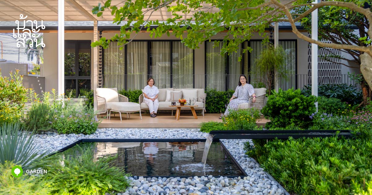 พื้นที่รกร้างกว่า 1 ไร่ ถูกแปลงโฉมเป็นสวนสวยที่รวมสองสไตล์ไว้ด้วยกัน จากบ่อดินเดิมปรับเป็นสวนป่าแบบไทยที่ร่มรื่น มีบ่อปลาและน้ำตก