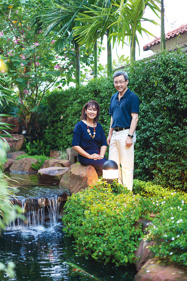 คุณจารุวรรณและคุณกำจรมักใช้เวลาว่างจากการทำงานอยู่บ้าน โดยเฉพาะออกมานั่งชมสวนท่ามกลางบรรยากาศอันแสนร่มรื่นพร้อมมองปลาคาร์ปแหวกว่ายไปมาในบ่อดูน่าเพลิดเพลิน ซึ่งปลาในบ่อมีทั้งหมด 9 ตัว โดยนำมาจากบ้านเดิมและเพิ่มจำนวนให้เป็นเลขที่ถูกต้องตามหลักฮวงจุ้ย