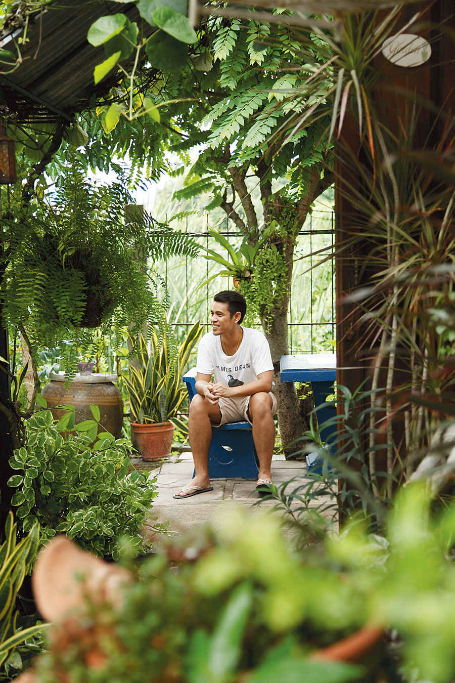 “การทำสวนมักมีสิ่งใหม่ๆให้เราได้เรียนรู้อยู่ตลอดเวลา อย่างเช่นเรื่องการปูกรวด ตอนแรกก็ไม่รู้เหมือนกัน ก่อนปูไม่ได้รองตาข่ายพลาสติก พอเวลาผ่านไปเกิดปัญหากรวดจมบ้าง วัชพืชโตแทรกขึ้นมาระหว่างกรวดบ้าง โชคดีที่ได้คำแนะนำจากลุงของผมซึ่งเป็นนักจัดสวน คอยแนะนำวิธีที่ถูกต้องให้ เรื่องต้นไม้ก็เช่นเดียวกัน ลองผิดลองถูกอยู่เยอะ ต้นไหนชอบแดดหรือร่ม บางทีร้านต้นไม้บอกเราว่าต้นนี้ต้องการแสงรำไรนะ แต่พอมาทดลองวางบริเวณที่แดดส่องทั้งวัน เอ๊ะ…ก็งามดีนี่นา เวลาผมจัดสวนแต่ละมุมจะคิดเหมือนเวลาทำงานศิลปะ ให้มุมมุมหนึ่งเป็นเสมือนภาพที่เราอยากวาด จัดคอมโพสต์อย่างไรให้ภาพที่เราวาดออกมาดูสวยงาม”