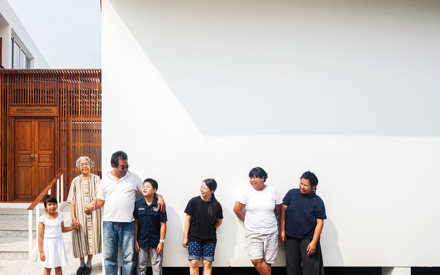 “จริงๆ แล้วมีเพื่อนมาค้างที่บ้านตั้งแต่ ป.2” คุณป่องอธิบายลักษณะพฤติกรรมอีกอย่างหนึ่งของครอบครัวนี้ “พอไปเรียนต่อ ก็ยังมีเพื่อนที่เมืองนอกตามมาค้างที่บ้านอีก เรียกว่าถ้ามีสมุดเซ็นชื่อแบบโรงแรม จะเห็นเลยว่าเคยมีเพื่อนจากทุกทวีปมาค้างที่บ้านหมดแล้ว และก็มีปาร์ตี้เยอะมาก (หัวเราะ) เลยเป็นอีกโจทย์ที่ต้องทำพื้นที่รองรับเพื่อนๆ ด้วย ทั้งเพื่อนที่มาอยู่ชั่วคราวและเพื่อนที่จะมาอยู่ถาวร ซึ่งแบบหลังก็จะแยกเป็นอาคารไว้ 2 ยูนิต เป็นเพื่อนญี่ปุ่นกับคนเช่าบ้านในบางส่วนของบ้านหลังเก่าที่อยู่กันมานานมากจนเป็นเพื่อนกันไปแล้ว ฝากฝังกันได้ แม่ก็เลยบอกให้สร้างตรงนี้ด้วยนะ” ทั้งหมดนี้จึงเป็นโจทย์หลายข้อที่ต้องปรับเปลี่ยนใหม่ให้ลงตัวในพื้นที่ 1 ไร่ที่มีลักษณะเป็นแนวยาว