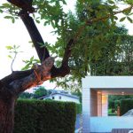 ที่ตั้งของบ้านอยู่ในบริเวณใกล้เคียงกับบ้านของญาติพี่น้อง การออกแบบรั้วจึงเป็นสิ่งสำคัญ สถาปนิกและเจ้าของบ้านเห็นตรงกันว่ารั้วบ้านไม่ควรเป็นผนังทึบสูง เพราะดูตัดขาดจากโลกภายนอกเกินไป จึงเลือกใช้ ผนังต้นชาดัดปิดล้อมส่วนของบ่อน้ำหน้าบ้าน สร้างพื้นที่ปิดล้อมที่ดูเป็นธรรมชาติแทน เมื่อมองออกไปก็จะเห็นผนังสีเขียวสดและยังพอมองทะลุออกไปเห็นความเคลื่อนไหวหน้าบ้านได้ด้วย ระหว่างการออกแบบเจ้าของบ้านยังคิดถึงมุมมองของเพื่อนบ้านด้วยว่าจะถูกบดบังจากการสร้างบ้านใหม่ของตนเองหรือไม่ บ้านหลังนี้จึงมีลักษณะค่อยๆไล่ระดับสูงขึ้น เรียกได้ว่าเป็นการออกแบบอย่างรอบด้าน และคิดถึงผู้อื่นอยู่เสมอ