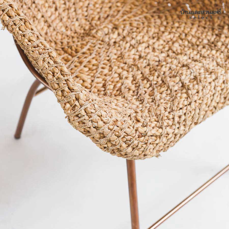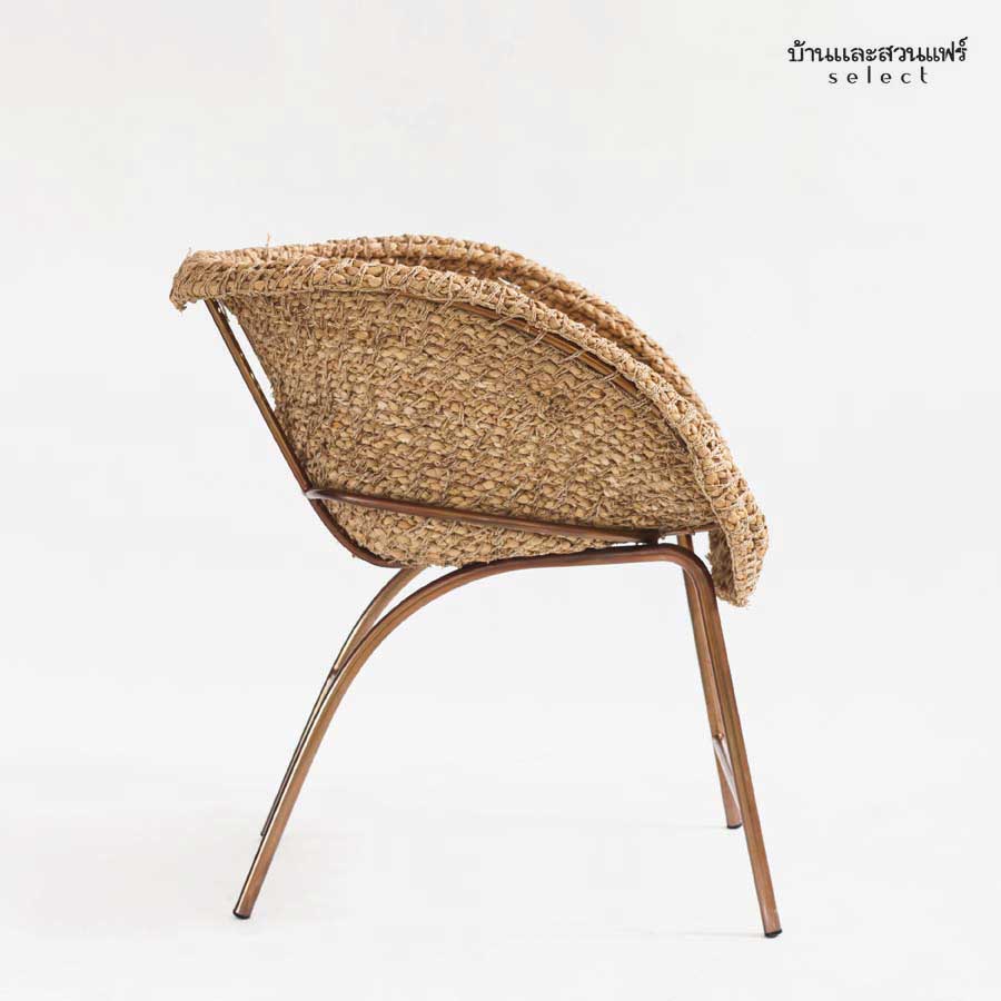 “เริ่มต้นมาจากงานที่เราไปทำงานร่วมกับชุมชน ก็ตั้งคำถามขึ้นมาว่า ชุมชนที่สานผักตบชวาเป็นตะกร้าขายเนี่ย สามารถพัฒนาศักยภาพของขยายสเกลงานจากของใช้ของชำร่วย ให้เป็นงานเฟอร์นิเจอร์ได้ไหม เป็นแนวความคิดของการประสานงานหัตถกรรมให้เข้ากับงานโมเดิร์น โดยโครงของเก้าอี้ทั้งหมดเป็นโครงสไตล์โมเดิร์นแบบอุตสาหกรรมโลหะชุบทองแดง ส่วนตัวที่นั่งก็จะเป็นงานสานผักตบชวา”