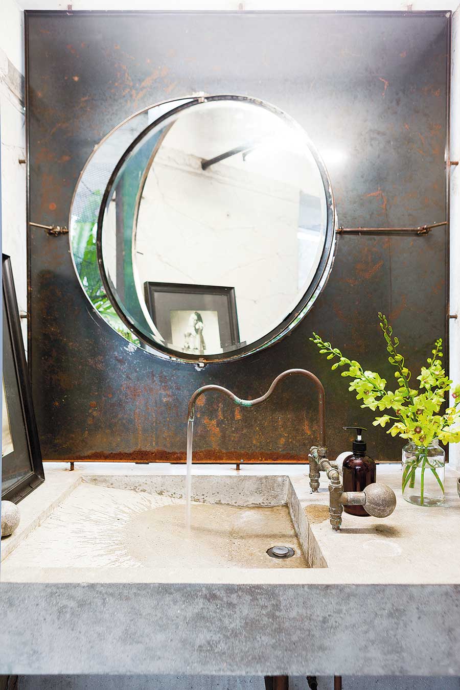 ท้ายสุดเป็นเทคนิคสำหรับงานเหล็ก โดยการ “ปล่อยให้ขึ้นสนิม” จะปล่อยให้ขึ้นเองตามธรรมชาติหรือจะเร่งให้เกิดเร็วขึ้นด้วยน้ำอัดลมผสมน้ำเกลือก็ได้ รอยสนิมจะช่วยเชื่อมโยงงานเหล็กเท่ๆกับพื้นผิวธรรมชาติอย่างหิน ปูน และไม้ได้อย่างไม่น่าเชื่อเลยทีเดียว