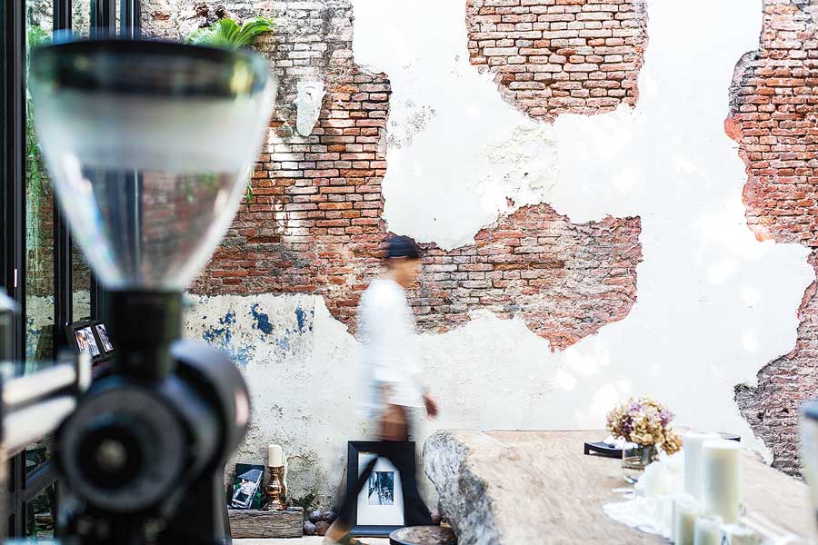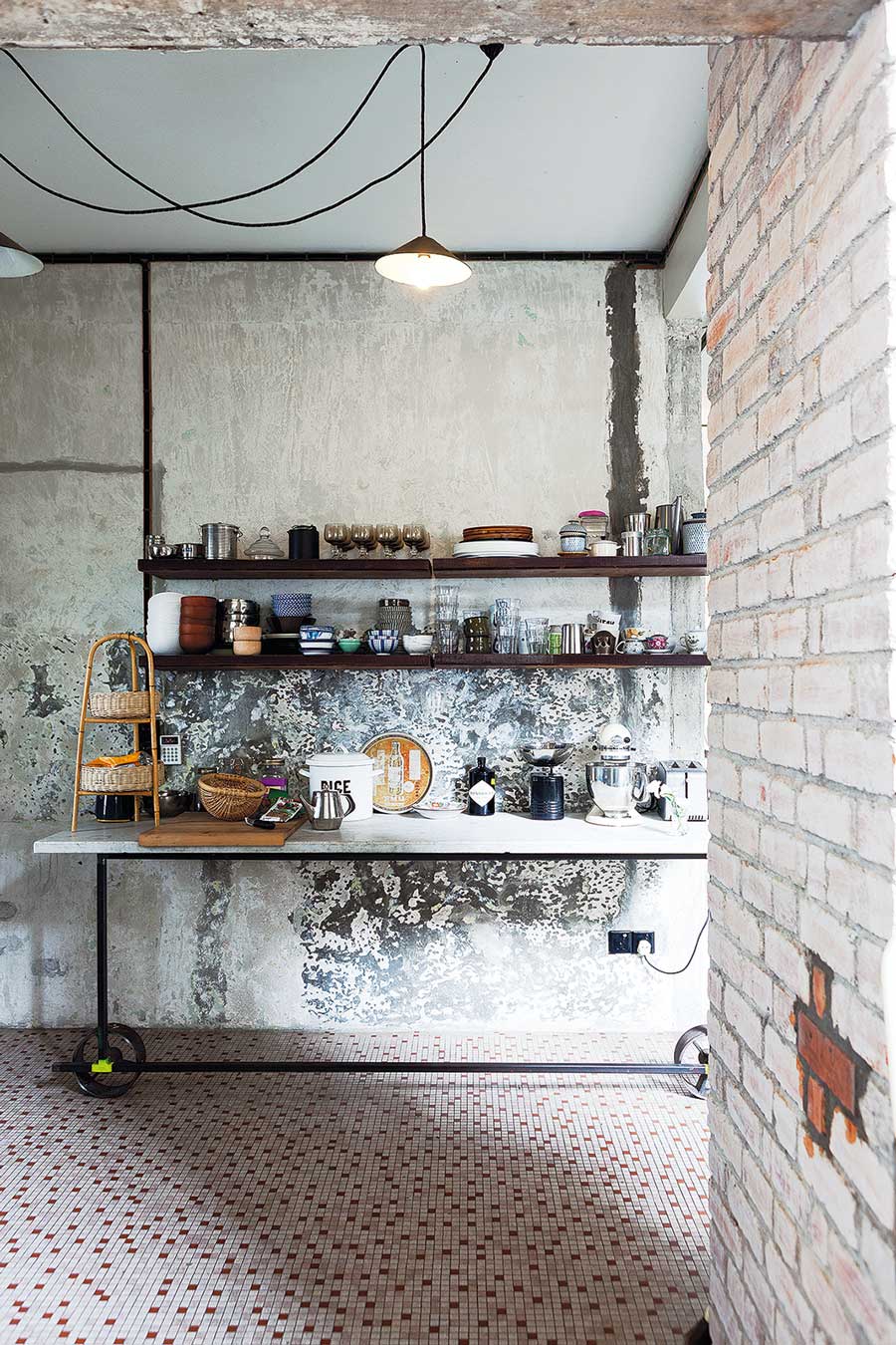 ทำให้ผนังอิฐยังคงดูคล้ายผนังอิฐเดิมๆในบางส่วน มีความวินเทจแต่ก็ไม่ดิบจนเกินไปโดยการลบสีออกแบบก้อนต่อก้อน