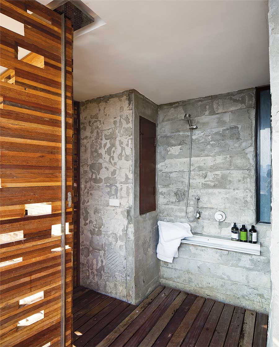 เลือกใช้การสกัดผนังที่แตกต่างกันไปในแต่ละพื้นที่ เป็นการเล่นกับวัสดุแบบเดียวในหลากหลายความรู้สึก ข้อดีของการสร้างพื้นผิวคือแสงและเงาที่แตกต่างกันไปในแต่ละช่วงเวลา ทำให้ผนังเหล่านี้มีเสน่ห์ที่ไม่เหมือนกันเลยทีเดียว