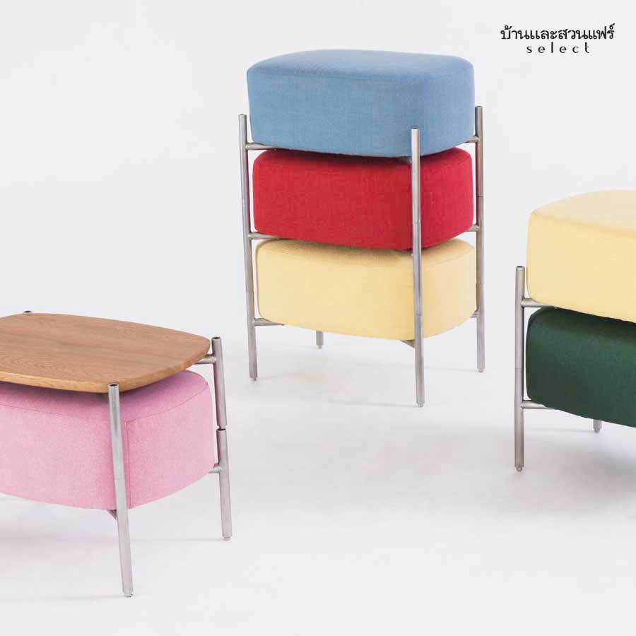 เช่นเดียวกับงาน ออกแบบเก้าอี้ ล่าสุดในชุด Bangkok Taxi ที่เกิดจากความสนใจสีสันรถแท็กซี่ในกรุงเทพฯ ซึ่งสะท้อนให้เห็นถึงความวุ่นวาย ความหลากหลาย และความสนุกสนานที่เป็นอัตลักษณ์ของเมืองกรุงเทพฯ โดยทั้งคู่นำคู่สีที่คุ้นเคยอย่างเขียวเหลือง ฟ้าแดง หรือสีชมพู มาลดทอนให้นุ่มนวลลงเพื่อใช้เป็นสีสันของเก้าอี้รูปทรงสี่เหลี่ยมผืนผ้าเล็กๆ พร้อมใส่ฟังก์ชันพิเศษด้วยโครงขาสแตนเลสที่สามารถนำเก้าอี้มาต่อกันให้เป็นชั้นได้ เพื่อให้สนุกกับการใช้งานไม่ว่าจะนั่งตัวเดียวหรือต่อให้เป็น 2-3 ชั้น รวมถึงเพิ่มดีไซน์ท้อปโต๊ะไม้ให้สามารถจัดเป็นชุดโต๊ะพร้อมเก้าอี้ได้เลย อีกทั้งเวลาไม่ใช้งานยังสามารถซ้อนเก็บเป็นชั้นเดียวกันได้ทั้งหมด ช่วยประหยัดพื้นที่ในการจัดวางได้ดี