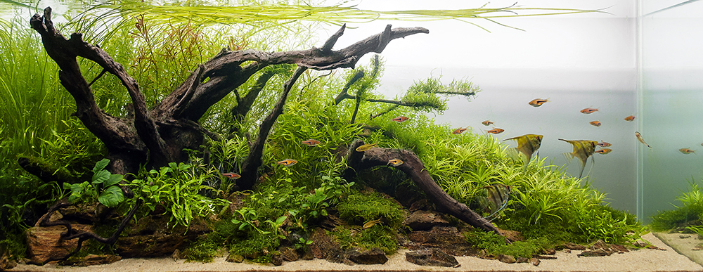 เป็นการจัดสวนลงในตู้ปลาโดยใช้อุปกรณ์ตกแต่งต่างๆ อย่างหิน ขอนไม้ พรรณไม้น้ำ มาจัดวางลงในตู้ปลาให้สวยงาม เพิ่มความมีชีวิตชีวาด้วยสัตว์น้ำอย่าง ปลา กุ้ง หอย ลักษณะก็เหมือนการจำลองธรรมชาติให้เข้ามาอยู่ในตู้ปลา และยังเป็นเหมือนชิ้นงานศิลปะที่มีชีวิตช่วยเพิ่มบรรยากาศผ่อนคลายให้ภายในบ้านได้เป็นอย่างดีเลยทีเดียว