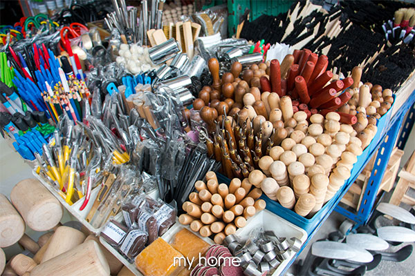 สำหรับใครที่เริ่มต้นอยากทำงาน Handmade จากหนัง แล้วยังไม่มีอุปกรณ์ แนะนำมาที่ร้านดวงกมลได้เลยค่ะ เพราะร้านนี้มีอุปกรณ์สำหรับงานเครื่องหนัง ครบครันตั้งแต่ขั้นตอนการตัด ตอก เจาะ ขัดเงา ทำสี จนถึงขั้นตอนของการดูแลรักษาเครื่องหนัง เพราะที่ร้านมีทั้งหมุดตอก ที่เจาะรูหลากหลายขนาด รวมถึงแบบของที่เจาะก็เยอะชนิดที่ว่าเห็นแล้ว อยากจะกลับไปเริ่มทำเครื่องหนังสักชิ้นเลยค่ะ นอกจากนี้ยังมีค้อนไซส์ต่างๆ สีย้อมหนังให้เลือกซื้อกันเยอะแยะไปหมดเลยล่ะค่ะ นอกจากอุปกรณ์สำหรับทำงานเครื่องหนังแล้ว ที่ร้านยังมีไขปลาวาฬและเครื่องขัดเงาต่างๆอีกด้วยนะ