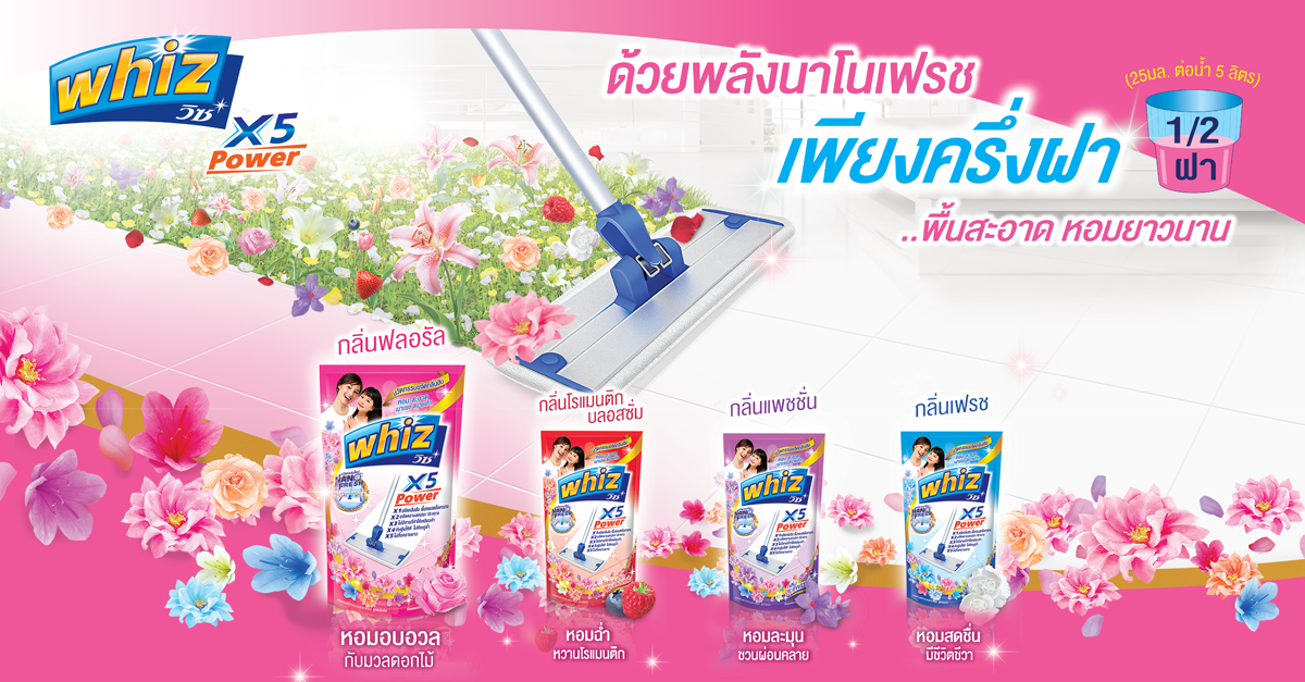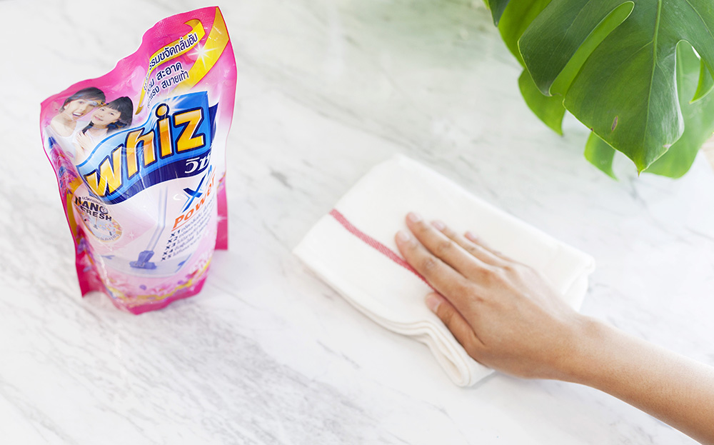 วิซ X5 Powerใช้ได้กับทุกพื้นผิว ไม่ว่าจะเป็นไม้ หินอ่อน เซรามิค ไม่ทิ้งรอยคราบให้กวนใจ พร้อมด้วยกลิ่นหอมสดชื่นสร้างบรรยากาศแสนสบายภายในบ้าน