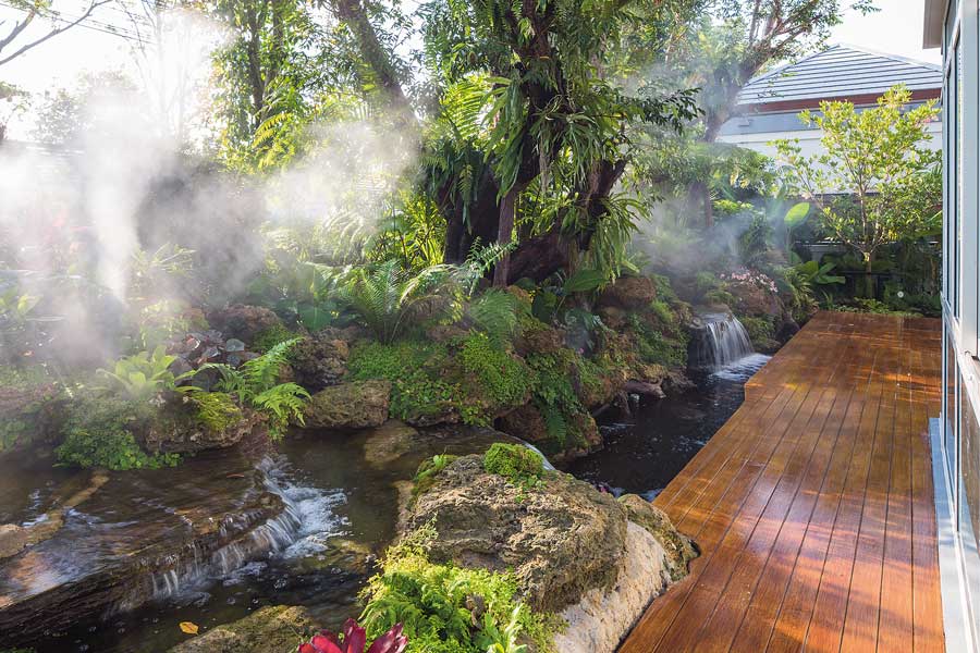 สวนเมืองร้อน สวนธรรมชาติในอุดมคติของแต่ละคนอาจตีความแตกต่างกันไปในแบบที่ต้องการ แต่สิ่งหนึ่งที่ทุกคนสัมผัสได้ก็คือพลังบวกทั้งกายและใจเมื่อได้อยู่ใกล้ชิดกับธรรมชาติ เหมือนกับสวนสวยภายในบ้านจัดสรรย่านพุทธมณฑลของ คุณสุจินต์ จงศิริ ที่น่าจะให้คำตอบในเรื่องพลังจากธรรมชาติได้เป็นอย่างดี