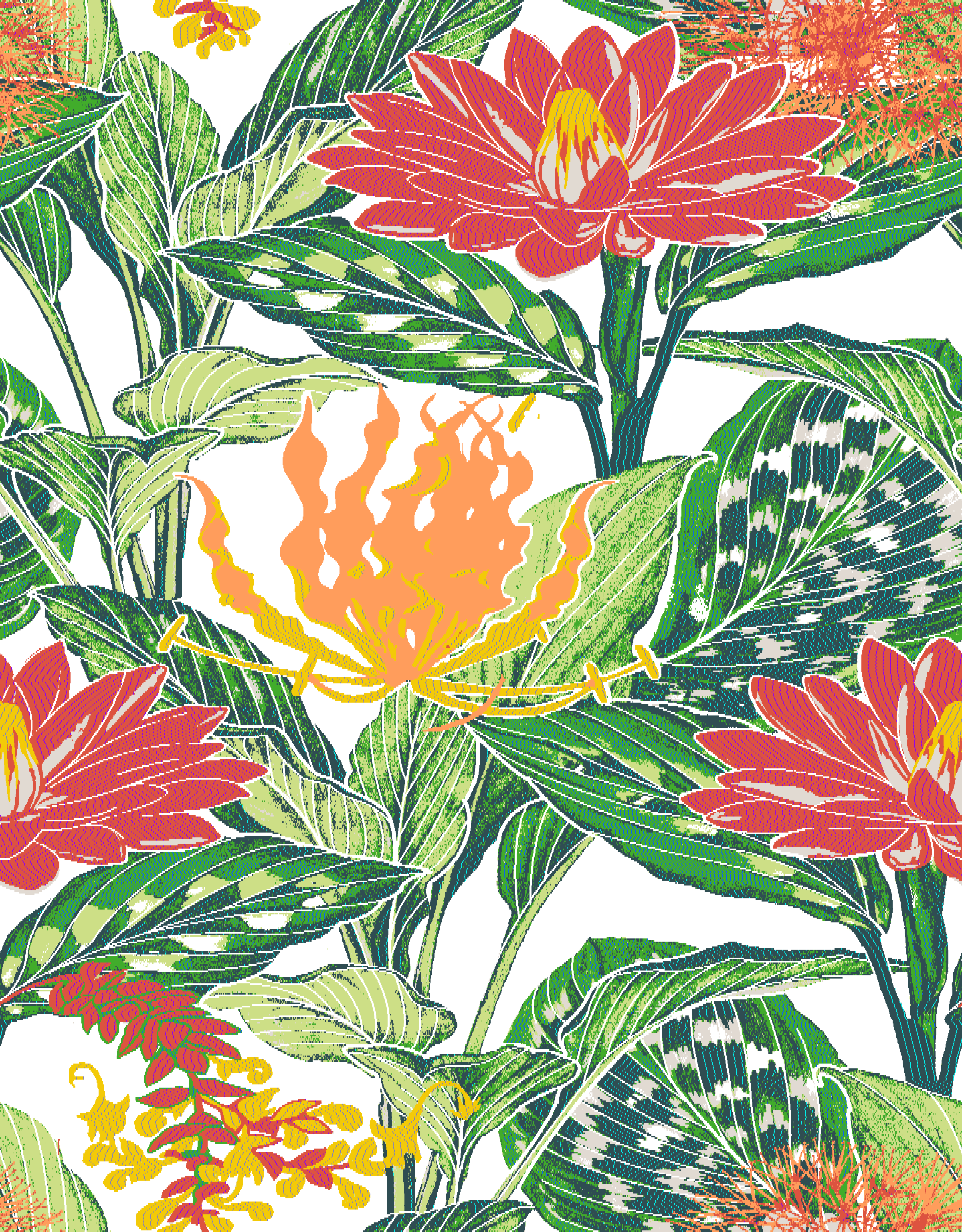 ผ้าลวดลายทรอปิคัลนี้ยังเป็นการก้าวข้ามปัญหาของภาพวาดที่ปกติจะมีสีสันค่อนข้างเยอะ ซึ่งเมื่อนำมาทำเป็นผ้าจะไม่สามารถลงสีเสมือนจริง หรือสามารถใช้สีบนเส้นด้ายมาระบายให้เข้ากันได้ ในกระบวนการนี้คุณศรายุทธจึงใช้วิธีการปรับด้วยการเก็บสี และทอลายให้เหมือนการผสมสีออกมาเป็นอีกเฉดหนึ่ง เพื่อให้ผ้าลวดลายทรอปิคัลผืนนี้สามารถใช้งานได้จริงทั้งการใช้เป็นม่านตกแต่งบ้าน หรือใช้บุเฟอร์นิเจอร์ที่สวยงามในแบบธรรมชาติเหนือจริง