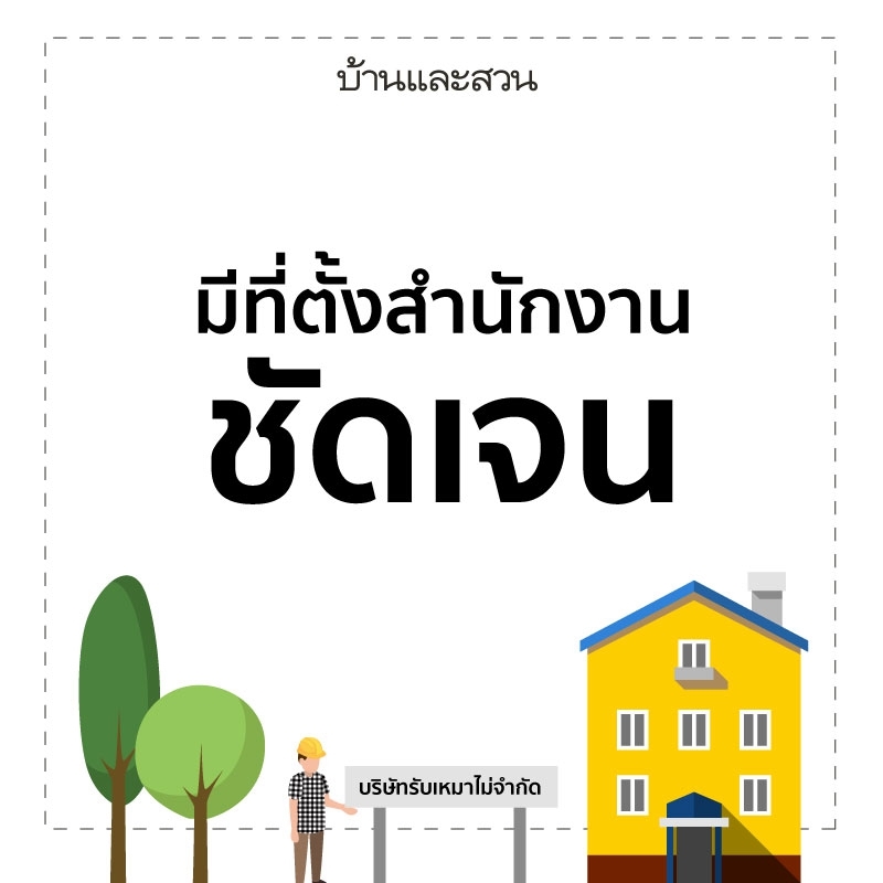 แน่นอนว่าจะให้ใครมาสร้างบ้านให้เรานั้น เขาต้องมีที่อยู่ที่แน่นอนหรือมีสำนักงานที่ตั้งที่ชัดเจน ซึ่งก็เป็นอีกหนึ่งข้อพิจารณาสำคัญ การจัดตั้งสำนักงานรับเหมาก่อสร้างอาจจะทำให้เรารู้สึกเชื่อมั่นเชื่อถือได้มากกว่าผู้รับเหมารายย่อยที่ไม่มีอยู่ชัดเจน แต่ก็ต้องพิจารณาในตัวที่ตั้งสำนักงานด้วยว่าสภาวะแวดล้อมนั้นมีความมั่นคงในแง่ธุรกิจมากแค่ไหน หรือเป็นสำนักงานรับเหมาก่อสร้างที่จดทะเบียนพานิชย์ถูกต้องตามกฎหมายเป็นบริษัทจำกัด หรือเป็นห้างหุ้นส่วนจำกัด หรือไม่