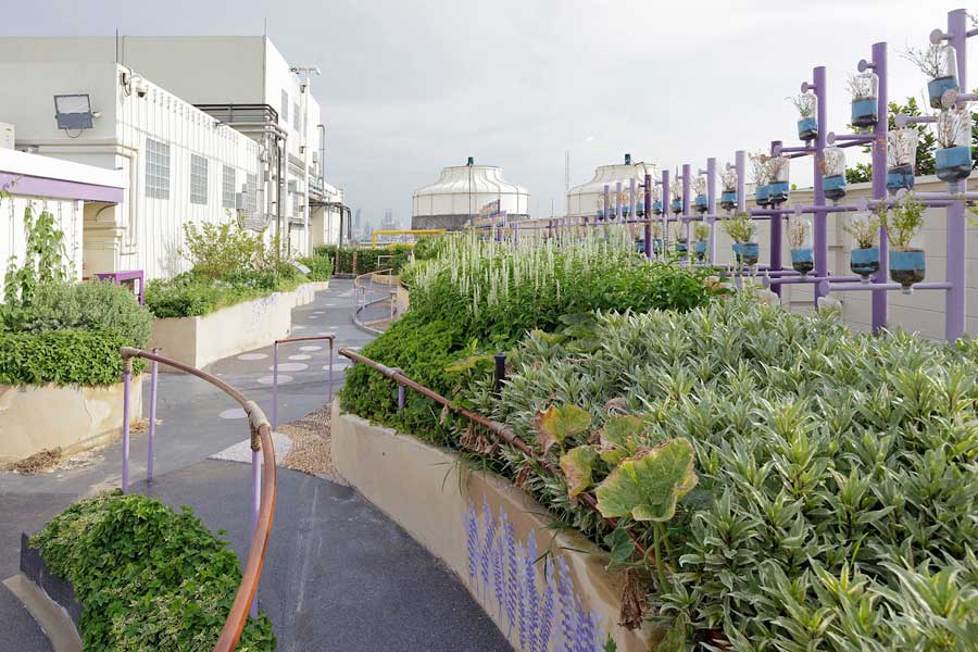 สวนผักลอยฟ้า ในเมืองที่แออัดเต็มไปด้วยป่าคอนกรีตอย่างกรุงเทพฯ การเข้าหาธรรมชาตินับเป็นสิ่งหนึ่งที่ช่วยให้เราผ่อนคลายทั้งกายและใจจากความวุ่นวายทั้งหลาย แม้พื้นที่เพียงเล็กน้อยทุกคนต่างก็ต้องการสร้างธรรมชาติขึ้นมาเพื่ออยู่ร่วมกันในชีวิตประจำวัน ไม่ต่างกับศูนย์การแพทย์สมเด็จพระเทพรัตน์ในโรงพยาบาลรามาธิบดี
