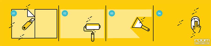 02 เมื่อเหลือแต่ชั้นด้านหลัง ซึ่งเป็นกระดาษติดอยู่บนผนัง ให้ใช้ลูกกลิ้งทาสีชุบน้ำผสมน้ำยาปรับผ้านุ่มกลิ้งให้ทั่ว ทิ้งไว้สักพัก กระดาษจะเริ่มพองตัวให้ลอกง่ายขึ้น