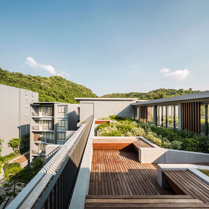 นอกจากความยิ่งใหญ่จากธรรมชาติที่โอบล้อมรอบคอนโดมิเนียมแล้ว ทีมนักออกแบบก็ไม่ลืมที่จะดีไซน์สถาปัตยกรรมและรังสรรค์บรรยากาศให้ The Valley สอดรับกับธรรมชาติ เริ่มจากการออกแบบสถาปัตยกรรมให้สอดคล้องกับพื้นที่ดินเดิม ทำให้คอนโดมิเนียมแห่งนี้เสมือนแทรกตัวอยู่ท่ามกลางต้นไม้ใหญ่ ดอกหญ้าที่พลิ้วไหว และธารน้ำธรรมชาติ โดยได้แรงบันดาลใจสำคัญในการออกแบบจาก ‘แลนด์สเคป’ ของธรรมชาติ ไม่ว่าจะเป็นขุนเขา เกาะแก่ง และลำธาร ซึ่งเมื่อนำมาลดทอนรายละเอียดให้ดูเรียบง่าย ทำให้ The Valley แห่งนี้เสมือนเป็นหมู่บ้านกลางหุบเขาที่สงบและอบอุ่น