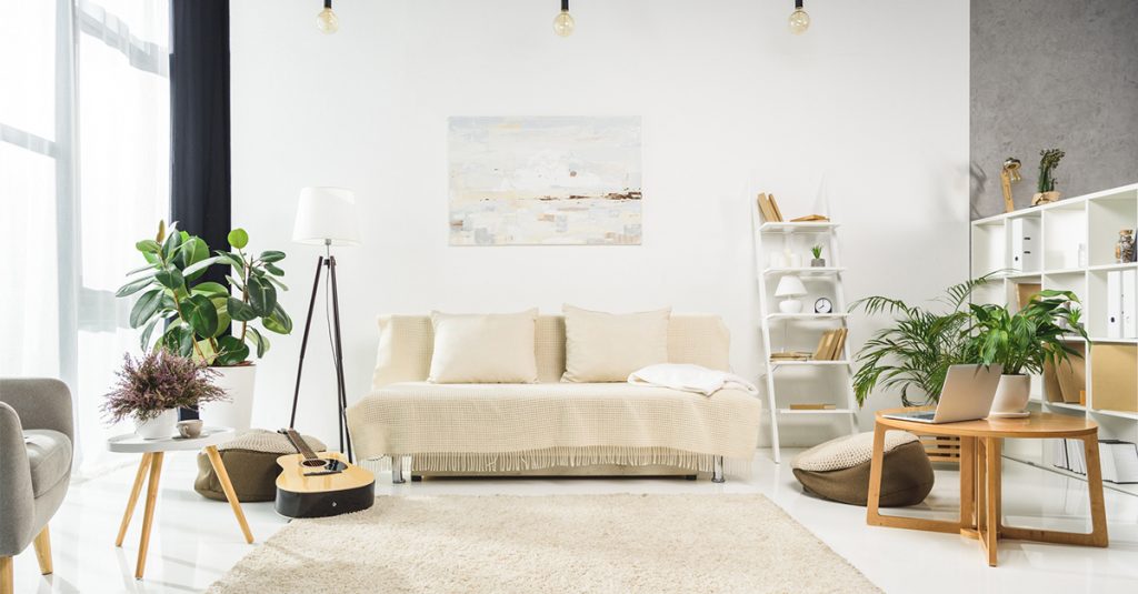 เริ่มต้นในส่วนของพื้นที่ “ห้องรับแขก” ด้วยความที่ตัวบ้านแบบ Modern Tropical จะเน้นไปที่ความโล่ง โปร่ง ของสเปซจึงทำให้เราสามารถเพิ่มลูกเล่นในส่วนของโคมไฟแขวนบริเวณเหนือที่นั่ง ทางด้านเฟอร์นิเจอร์อาจเลือกใช้การตกแต่งแบบ “Minimal” เน้นโทนสีที่สะอาดตา ดีไซน์เรียบ พร้อมแซมด้วยสีเขียวจากต้นไม้ ที่นอกจากจะทำให้รู้สึกผ่อนคลาย สบายตาแล้ว ยังช่วยปลุกความสดชื่นในแบบฉบับ Tropical ได้เป็นอย่างดี