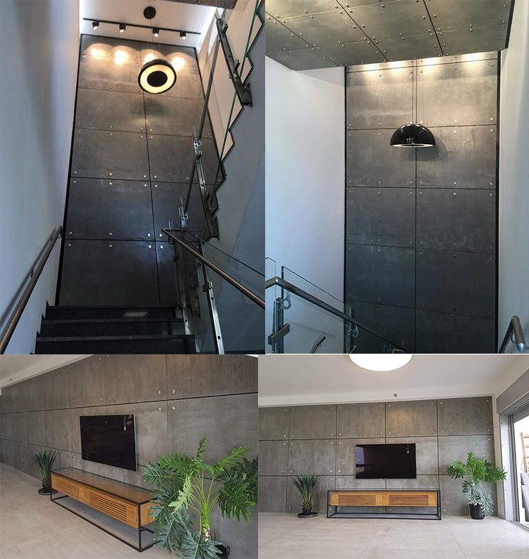 ใช้การคว้านเนื้อแผ่นเฌอร่าบอร์ดลงไปเป็นวงกลมตามแนวการยึดสกรู เป็นการสร้างแพทเทิร์นเพิ่มลูกเล่นให้ผนัง ที่ยังคงความขรึม เท่เตามแบบสไตล์ลอฟท์