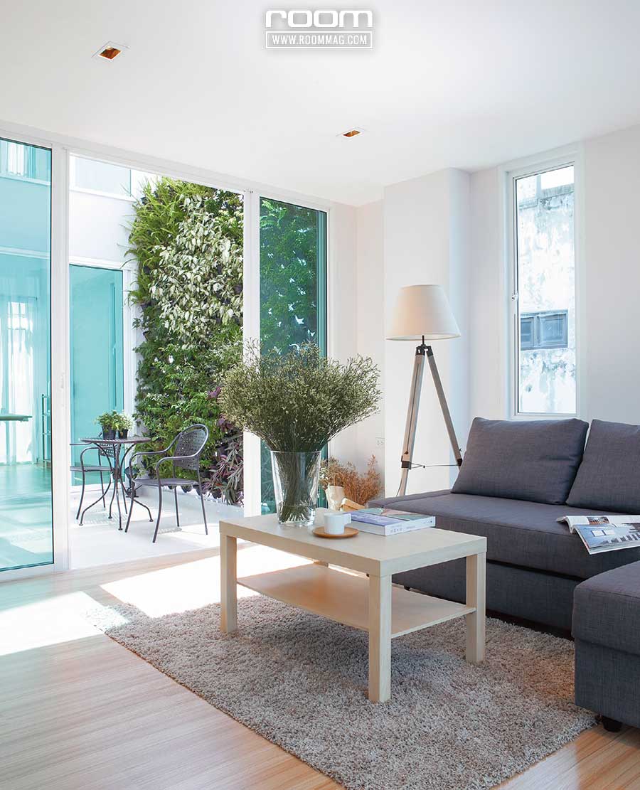 มุมโปรดของผมคือห้องนั่งเล่น ชอบมานั่งเล่นตรงนี้ จําได้ว่ามีช่วงหนึ่งอากาศดีมาก วันนั้นมีปาร์ตี้เล็กๆท่ีบ้าน ผมลองเปิดประตู เปิดหน้าต่าง มีลมพัดผ่าน ได้เห็นสวนสีเขียวๆ รู้สึกว่าได้บรรยากาศอบอุ่นและโฮมม่ีดีครับ”