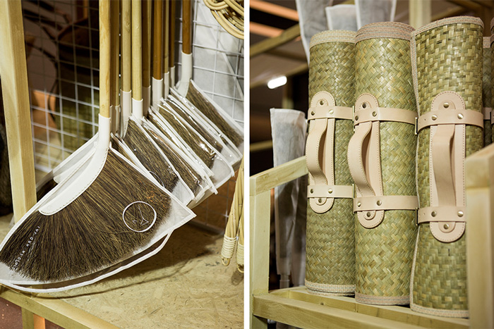 “ ไม้กวาดนี้มันต่างจากไม้กวาดทั่วไปยังไงคะ ” คำถามที่ชวนให้คุณป้าแม่ค้าลุกมาอธิบายถึงคุณสมบัติของไม้กวาดที่ต้องบอกเลยค่ะว่าเป็นไม้กวาดที่คู่ควรกับบ้านเราจริงๆ เพราะนอกจากจะคัดสรรค์วัตถุดิบมาอย่างพิถีพิถันไม่ว่าจะเป็น ดอกแขม เสี้ยนตาล หรือขุยมะพร้าว คุณป้ายืนยันเลยค่ะว่าเลือกมาแล้วอย่างดี บ้านป้าใช้ยังไง ก็อยากให้ทุกคนได้ใช้ด้วย ไม้กวาดของร้านสะอาดใจทุกชิ้นผ่านกระบวนการ กรรมวิธีการทำที่คราฟท์สุดๆ ตั้งแต่การนำจัดการกับวัตถุดิบ ค่อย ๆ จับเป็นช่อ ๆ เย็บประกอบด้วยมือทุกชิ้น ทำให้มั่นใจได้เลยค่ะว่า กวาดได้ไม่สะดุด ไม่มีหลุดร่วงแน่นอน มีใช้เลือกหลากหลายขนาดทั้งแบบไม่กวาดบ้านไซส์ปกติ ไม้กวาดบ้านอันจิ๋วพร้อมที่โกยผง หรืออยากซื้อแต่ไม้กวาดจิ๋วก็มีขายยแยกค่ะ นอกจากนี้ยังมีเสื่อกระจูด ไซส์พอดีที่มากับหูหิ้วหนังแท้สำหรับการพกออกไปปิกนิค รับอากาศดีๆข้างนอกกับครอบครัว หรือจะใช้เป็นเสื่อสำหรับนั่งสมาธิก็ได้ค่ะ มีให้เลือกกัน 3 ขนาดเลยจ้า