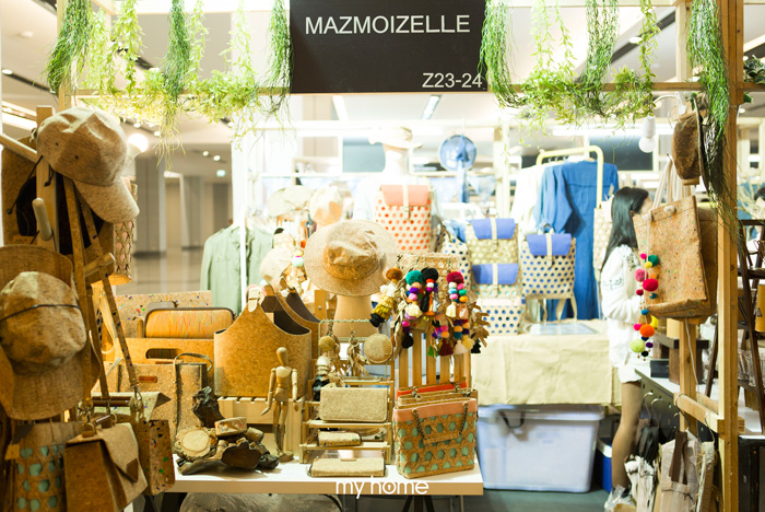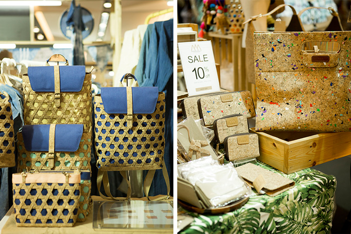 ไม้คอร์ก วัสดุที่เป็นทุกอย่างของร้าน Mazmozelle หลายคนที่แฟนพันธุ์แท้โซน art market งานบ้านและสวนแฟรคงคุ้นหน้าคุ้นตาผลิตภัณฑ์ไม้คอร์กจากร้านนี้กันอยู่แล้วแน่ ๆ ไม่ว่าจะเป็นของใช้ต่าง ๆ จนไปถึงกระเป๋าเกือบทุกรูปแบบ ครั้งนี้เดินผ่านก็โดนสะกดจิตด้วยกระเป๋าเป้ดีไซน์เก๋ๆ ที่ได้แรงบันดาลใจมาจาก ตะกร้าเก็บชาของชาวเขา นำมาประยุกต์ใช้กับไม้คอร์กได้น่ารักน่าหยิกสุด ๆ โดยทางร้านจะนำแผ่นไม้คอร์กไปรีดให้เบน ตัดเป็นเส้นแล้วส่งต่อให้กลุ่มแม่บ้านอำเภอพนักนิคมสานออกมาให้เป็นลวดลาย จากนั้นค่อยไปประกอบเป็นตัวกระเป๋าต่อไป คอลเลคชั่นนี้เพิ่งออกสด ๆ ร้อน ๆ มีด้วยกัน 3 แบบค่ะ ทั้ง กระเป๋าเป้ tote bag รวมไปถึงกระเป๋าสะพายข้างแบบ cross boby ที่จับคู่สีผ้าสีน่ารัก ๆ โอ๊ยย! ใจสั่น